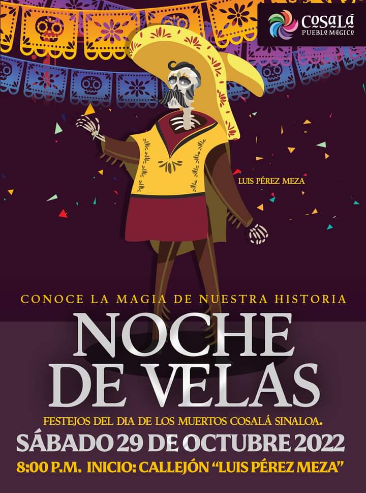 El Pueblo Mágico de Cosalá hace gala de este día con la Noche de Velas, este sábado 29 de octubre a partir de las 20:00 horas.