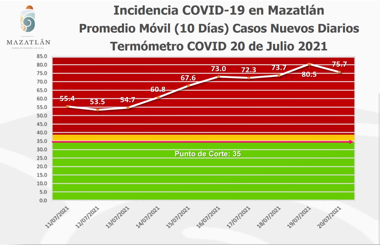 Cabe destacar que este miércoles, Mazatlán amaneció con 549 casos activos de Covid, continúa en Semáforo Rojo y se mantiene en tercer lugar en el estado, por debajo de los municipios de Culiacán y Ahome que hoy tienen 2 mil 102 y 522 pacientes del virus Sars-Cov-2.