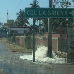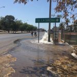 Mazatlán, Sinaloa.- Miles de litros de agua se desperdicia después de que una compañía telefónica excavara para instalar un poste, dañando una de las principales tuberías de la Jumapam.