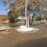 En el lugar se observó a personal de una empresa de comunicación, la cual tenían a un poste de concreto a un costado del chorro de agua, pero al intentar instalarlo dañaron la tubería, según se informó.