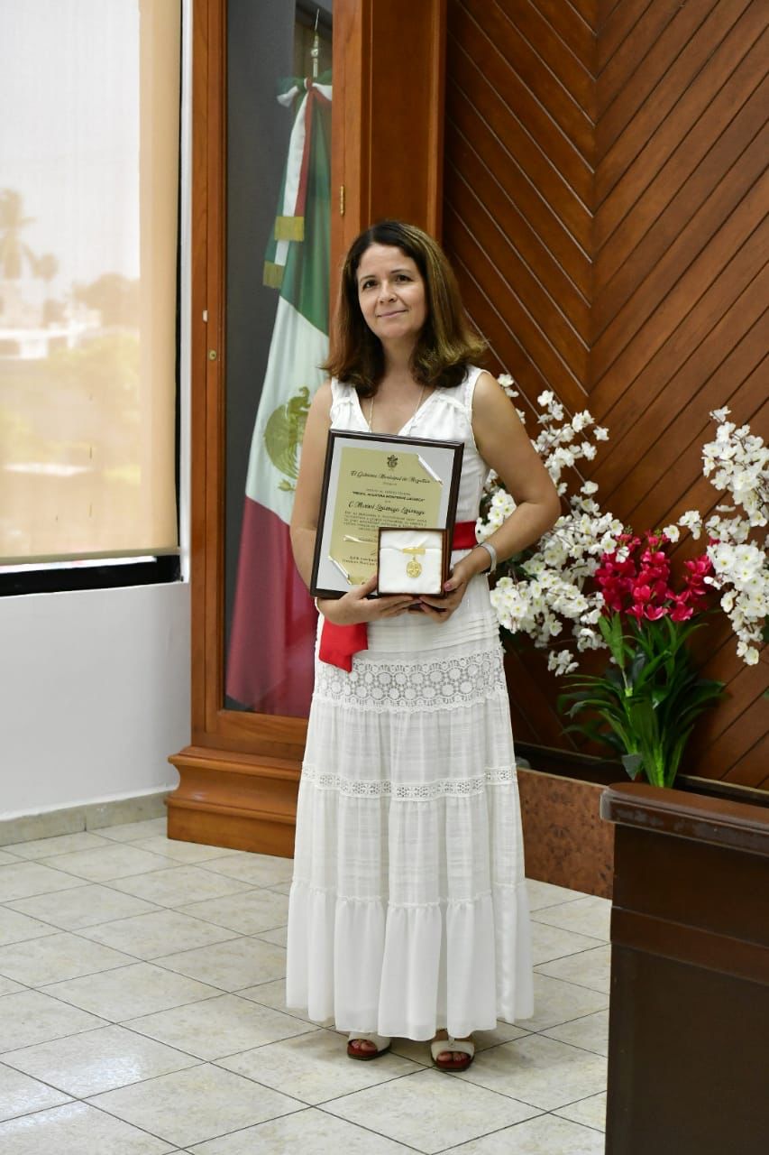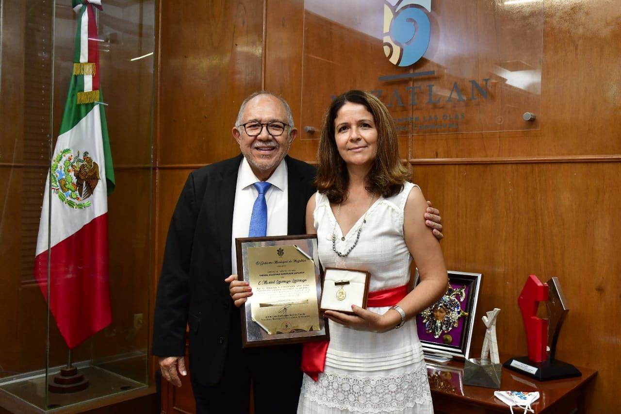 En la Sesión Solemne que se llevó a cabo este martes, El Alcalde Luis Guillermo Benitez Torres hizo entrega de la medalla a nombre del pueblo de Mazatlán, y destacó el gran espíritu de servicio de la homenajeada, quien durante 20 años ha ofrecido talleres de lectura, pintura y escritura, en la sindicatura de La Noria.