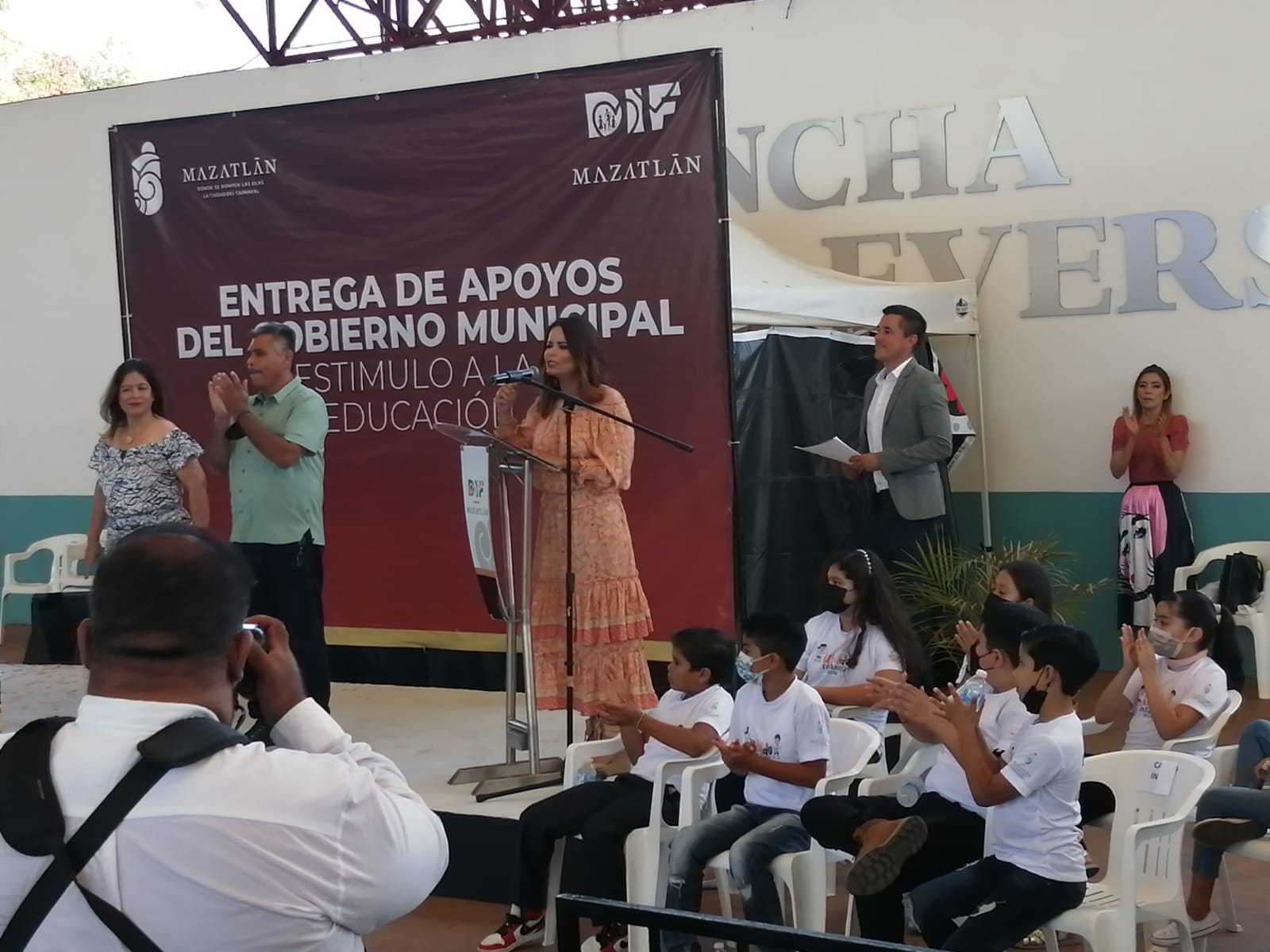 “Agradecida estoy también con sus padres que juegan un papel fundamental en la educación, se entregaron un total de 16 millones de pesos. En esta nueva administración, cumpliendo con el compromiso, incrementamos 200 espacios más, destinados exclusivamente para hijos de madres solteras. Con gran gusto les comparto que hoy, en eta nueva administración, entregaremos más de 18 millones de pesos exclusivos para la educación de las niñas, niños de Mazatlán”.