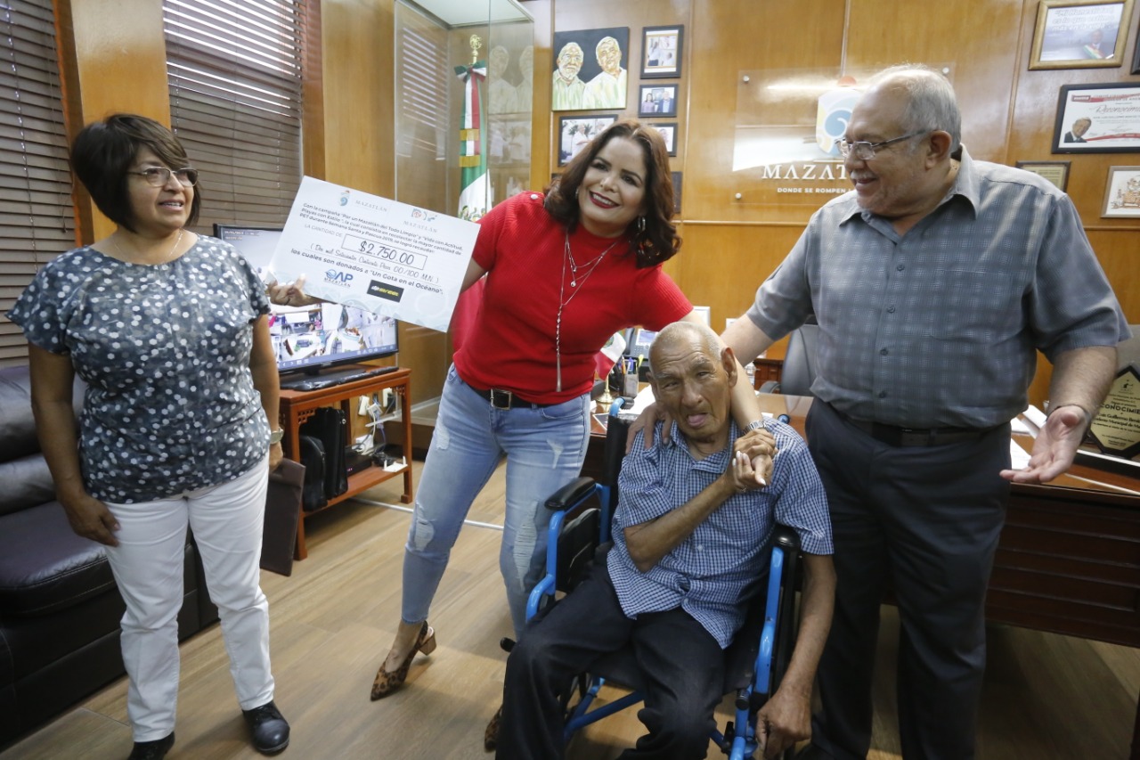 El albergue “Una gota en el océano” -que es donde se encuentra este personaje icónico de Mazatlán- recibió lo recaudado con la recolección de PET en Semana Santa