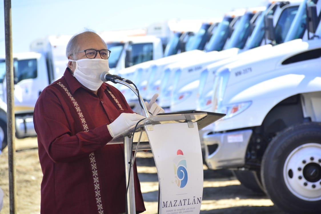 Mazatlán.- El Gobierno que encabeza el Químico Benitez Torres entregó a Mazatlán de 10 nuevos camiones recolectores de basura, en los que invirtió 23 millones 738 mil 219.99 pesos, sin contraer deuda en perjuicio de la ciudadanía.