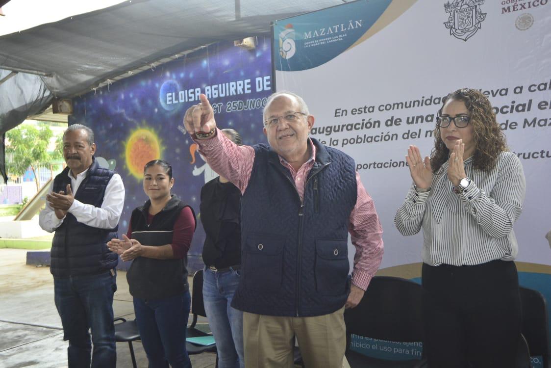 Mazatlán.- El Gobierno Municipal del Químico Luis Guillermo Benitez Torres hizo entrega de un comedor escolar en el Jardín de Niños «Eloísa Aguirre del Valle», ubicado en la Colonia Flores Magón.