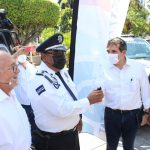 Mazatlán, Sinaloa; 26 de junio de 2021.- El Presidente Municipal, Químico Luis Guillermo Benitez Torres, entregó esta mañana sábado, 10 patrullas nuevas a la Secretaría de Seguridad Pública y Tránsito Municipal, en un evento que contó con la asistencia especial del dirigente estatal del PAS, Héctor Melesio Cuén Ojeda, y regidores del cabildo Municipal.