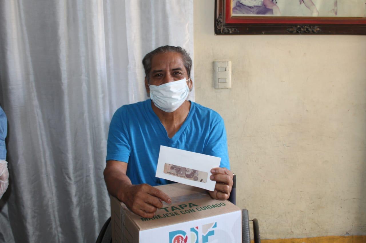 Casa por casa se entregó un apoyo de $1050 pesos además de una despensa con productos de la canasta básica a 500 personas con discapacidad