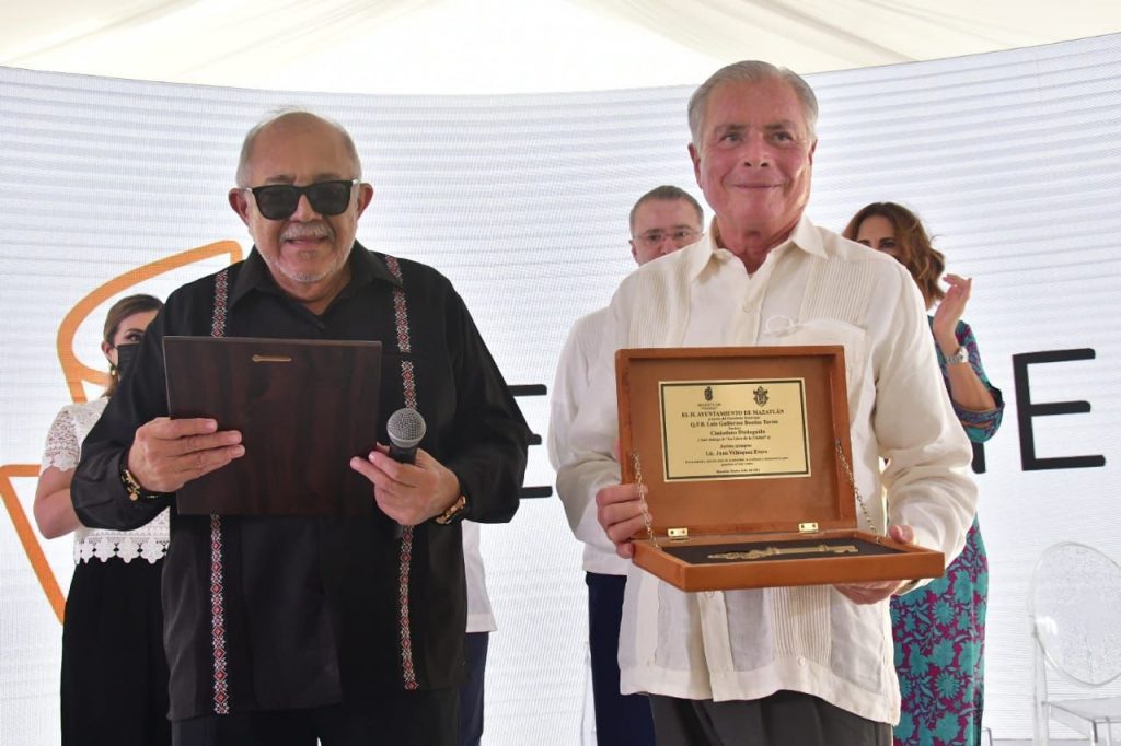 Mazatlán.- El Alcalde Luis Guillermo Benitez Torres nombró Huésped Distinguido y entregó las Llaves de la Ciudad al reconocido jurista mexicano Juan Velásquez Evers, por su destacada trayectoria y voluntad de hacer valer la ley.