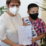 El estudiante de quinto grado de la Escuela ‘Gabriela Mistral’ entrega reportes de vecinos por fallas en el alumbrado público