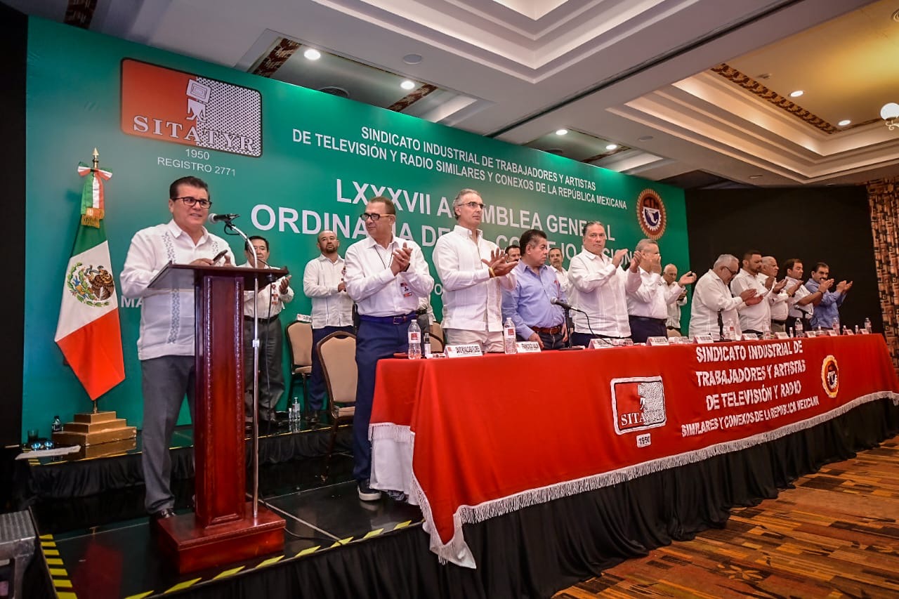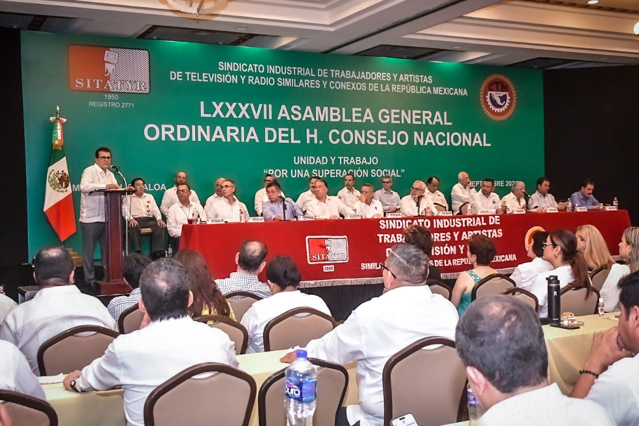 Mazatlán, Sinaloa, 24 de septiembre del 2024.- El Alcalde de Mazatlán, Edgar González, inauguró la LXXXVII Asamblea General Ordinaria del Consejo Nacional del Sindicato Industrial de Trabajadores y Artistas de Televisión y Radio Similares y Conexos de la República Mexicana (SITATYR), convirtiendo al puerto en sede nacional de este importante evento.