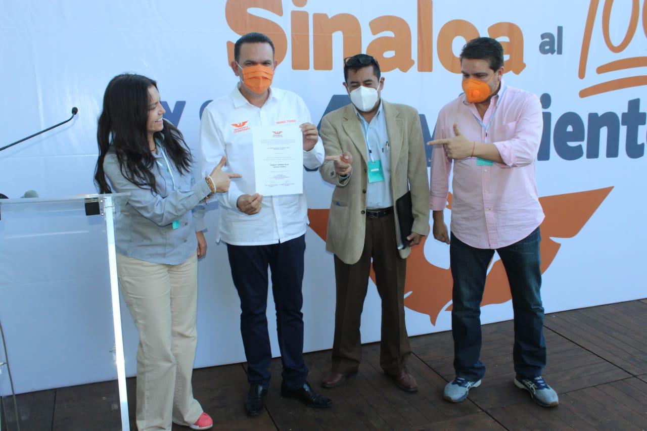 Culiacán, Sin, 18 de diciembre de 2020.- En Sinaloa, el cambio es posible e indispensable, manifestó Sergio Torres, al recibir la constancia de su registro como precandidati de Movimiento Ciudadano a la gubernatura del estado. La diputada federal Julieta Macías Rábago, presidenta de la comisión nacional de convenciones y procesos internos de MC, hizo entrega del documento, a la vez de señalar que con Sergio Torres su partido ganará Sinaloa.