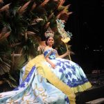 La soberana Infantil, portando un majestuoso atuendo de color azul con brillos dorados, realizó su pasarela y mediante un audio, expresó sentirse contenta y emocionada por estar en una noche de magia , cultura y tradición.