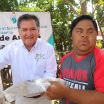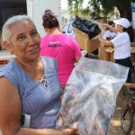 En las entregas se benefició a 250 familias de cuatro de las colonias más vulnerables del puerto con bolsas de 2 kilos de pescado cada una.