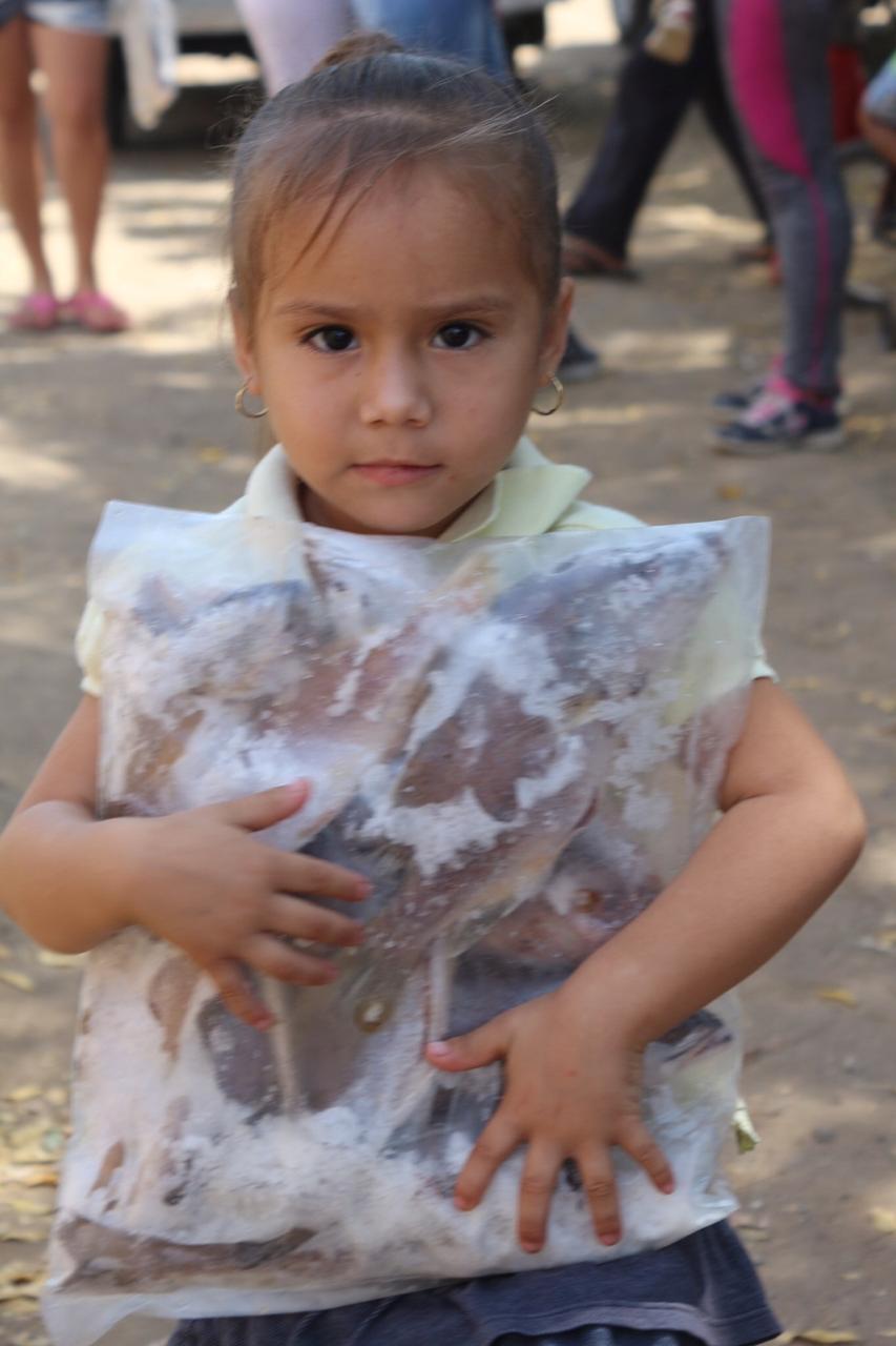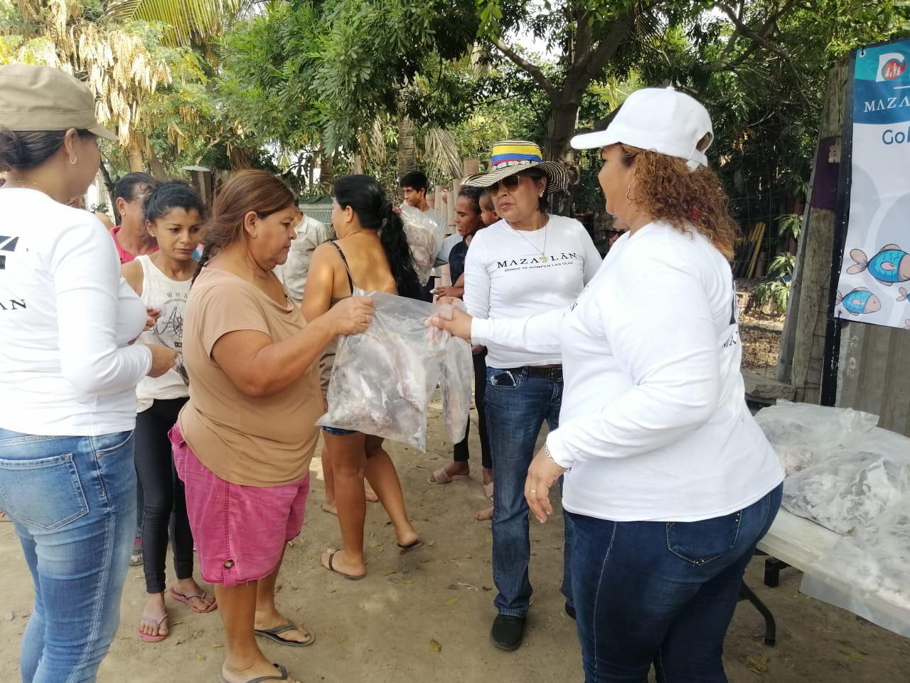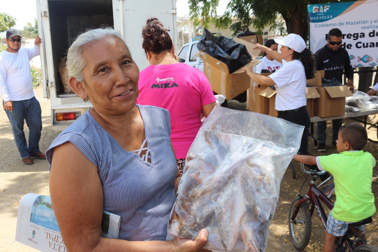 En las entregas se benefició a 250 familias de cuatro de las colonias más vulnerables del puerto con bolsas de 2 kilos de pescado cada una.