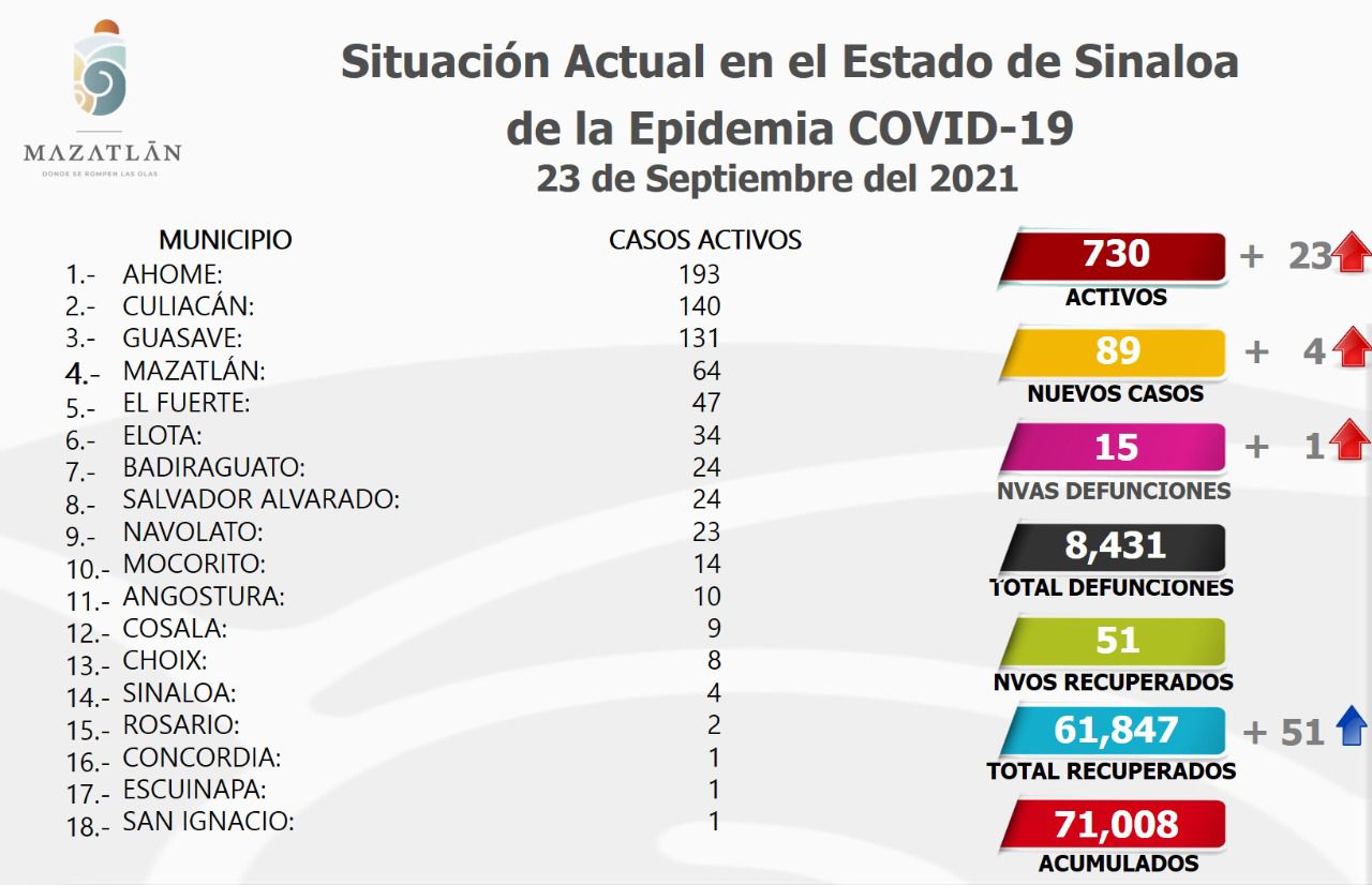 Comentó que el puerto lleva ya 45 días consecutivos como el que menos casos activos tiene, de los cuatro municipios que concentran el mayor número de habitantes en Sinaloa, ya que Ahome hoy registra 193, Culiacán 140 y Guasave 131.