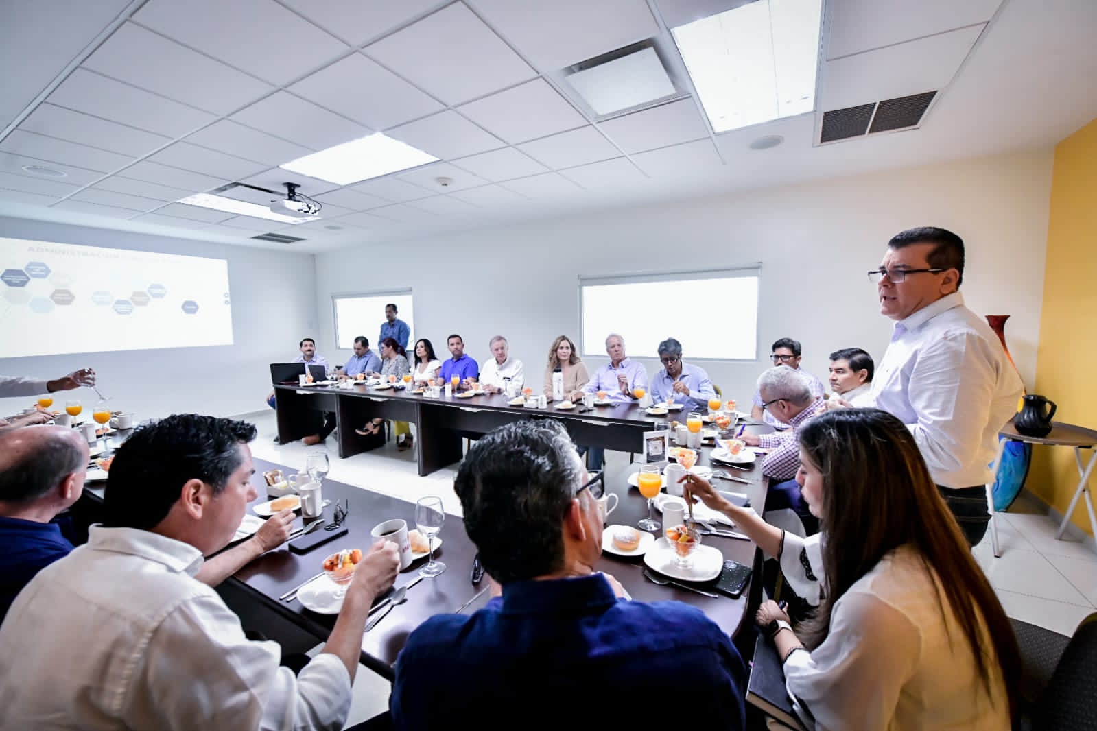 Mazatlán, Sinaloa, 29 agosto 2023-. Una productiva mesa de trabajo se llevó a cabo en la sala de juntas del Centro de Convenciones entre el Alcalde Edgar González y empresarios de COPARMEX.