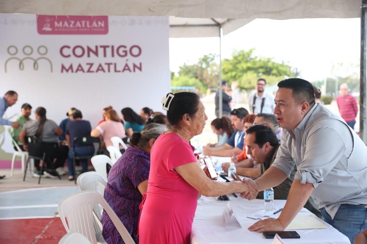 Mazatlán, Sinaloa, 26 de noviembre de 2025.- Esta tarde de miércoles, la Presidenta Municipal, Estrella Palacios Domínguez, lideró la jornada de atención ciudadana “Contigo Mazatlán” en la cancha de basquetbol de la Plazuela Solidaridad, ubicada en la colonia Francisco Villa. Este evento busca establecer un contacto directo con la población y reforzar el vínculo entre el Gobierno Municipal y los ciudadanos.