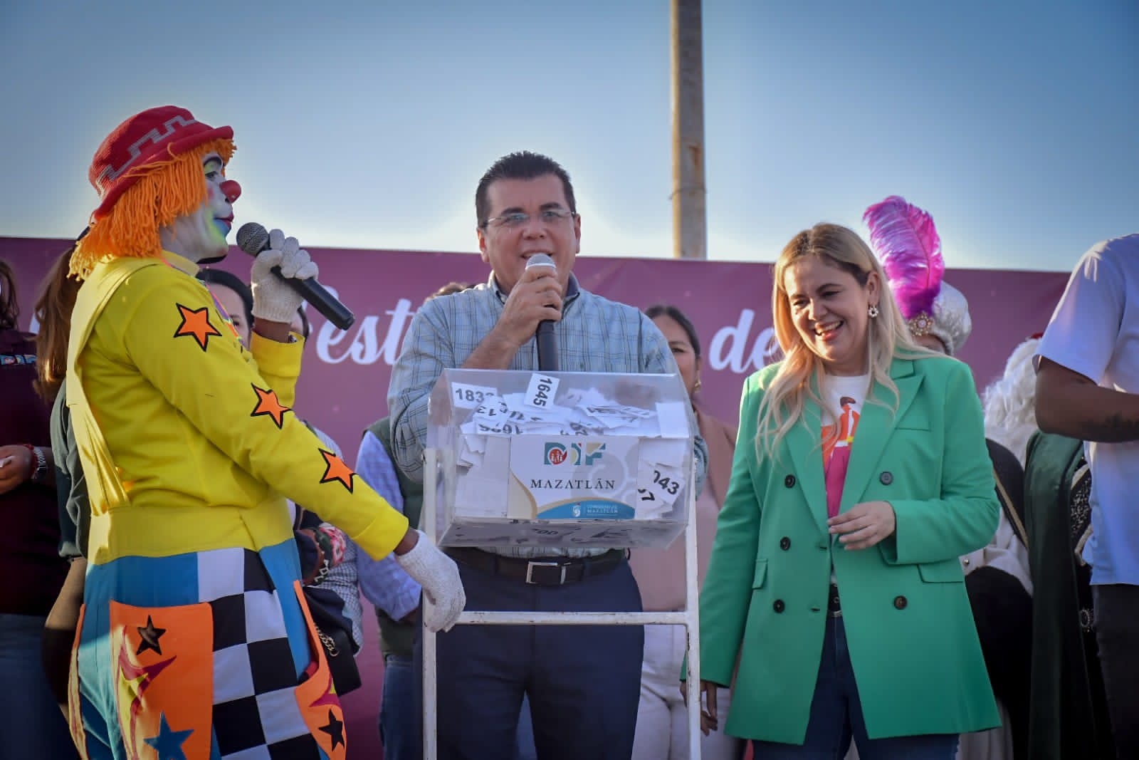 El festejo fue encabezado por el Alcalde Edgar González y la presidenta del Sistema DIF Mazatlán, María Teresa Apodaca Muñoz, quienes al igual que los cientos de asistentes, disfrutaron de un espectáculo artístico y musical, así como de la participación del payaso Triki Trakes, en uno de los fraccionamientos más grandes de la ciudad.