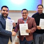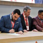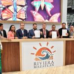 La mañana de este viernes, en el stand de la Riviera Mazatlán, se llevó a cabo la firma del acuerdo de colaboración entre la Riviera y Huatulco, y ahí estuvieron presentes el Secretario de Desarrollo Económico, Turismo y Pesca de Mazatlán, David González Torrentera, y los alcaldes de Escuinapa, Emmett Soto Grave, y de Huatulco, Giovanne González García.