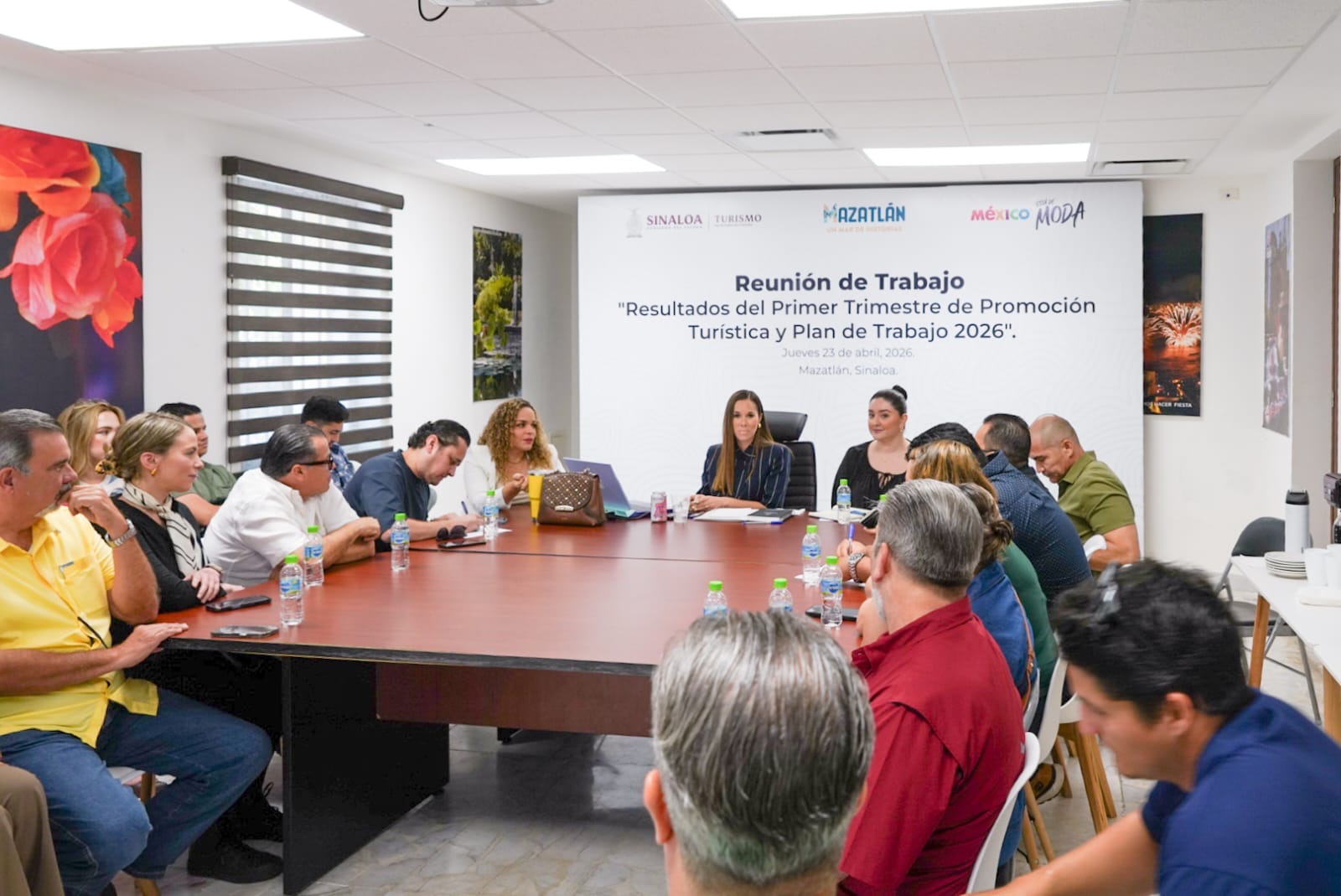 Mazatlán, Sinaloa, 24 de abril de 2026.- Para compartir avances en promoción turística y trabajar de la mano con el sector empresarial, con la misión de fortalecer y amplificar las acciones del destino, la secretaria de Turismo de Sinaloa, Mireya Sosa Osuna, encabezó una reunión de trabajo con líderes de las principales cámaras empresariales de Mazatlán, en la que también se escucharon sus ideas, necesidades y propuestas.
