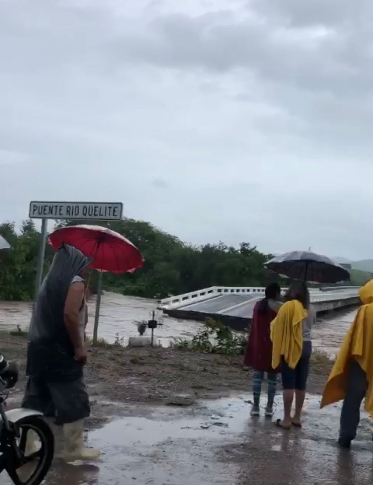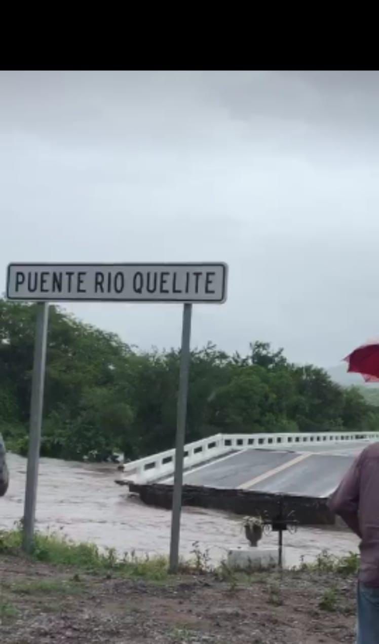 Mazatlán, Sinaloa.- La fuerte corriente del Río Quelite, ocasionada por las lluvias del huracán “Nora”, terminó de tumbar y llevarse parte del puente que lo atraviesa a la altura del kilómetro 31, por lo que la circulación quedó suspendida.