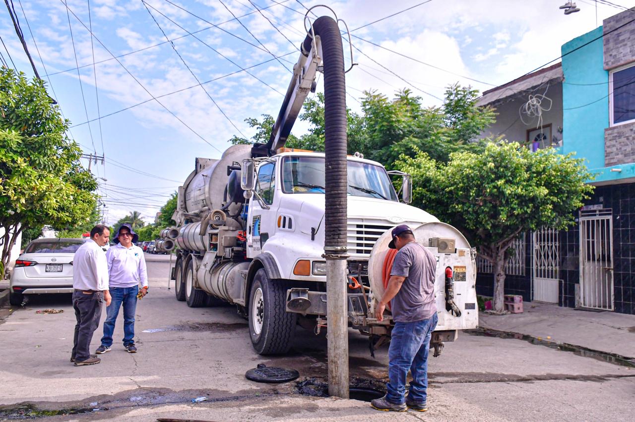 Mazatlán, Sinaloa 7 octubre 2024-. El Gobierno de Mazatlán por instrucciones del Alcalde Edgar González atiende una petición que realizaron los vecinos de la Colonia Juárez por colapso de drenaje.