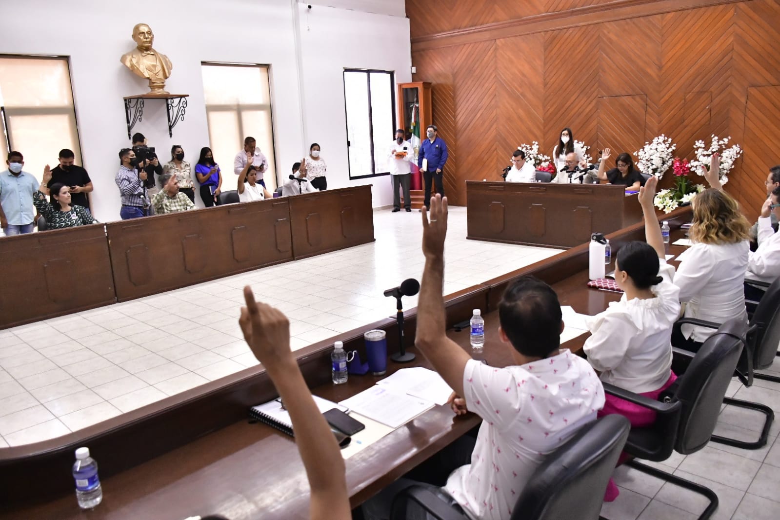 En el quinto punto, la Comisión de Educación y ediles aprobaron por unanimidad el dictamen en relación a los nombres de cuatro maestras distinguidas en la labor docente en este municipio, sus nombres serán grabados en el monumento al maestro ubicado en la avenida Miguel Alemán y calle Rigoberto Lewis de la ciudad el próximo 15 de mayo.