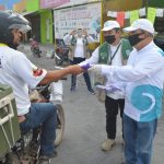 Además de sanitizar y ordenar espacios públicos, entregan trípticos informativos y cubre bocas.