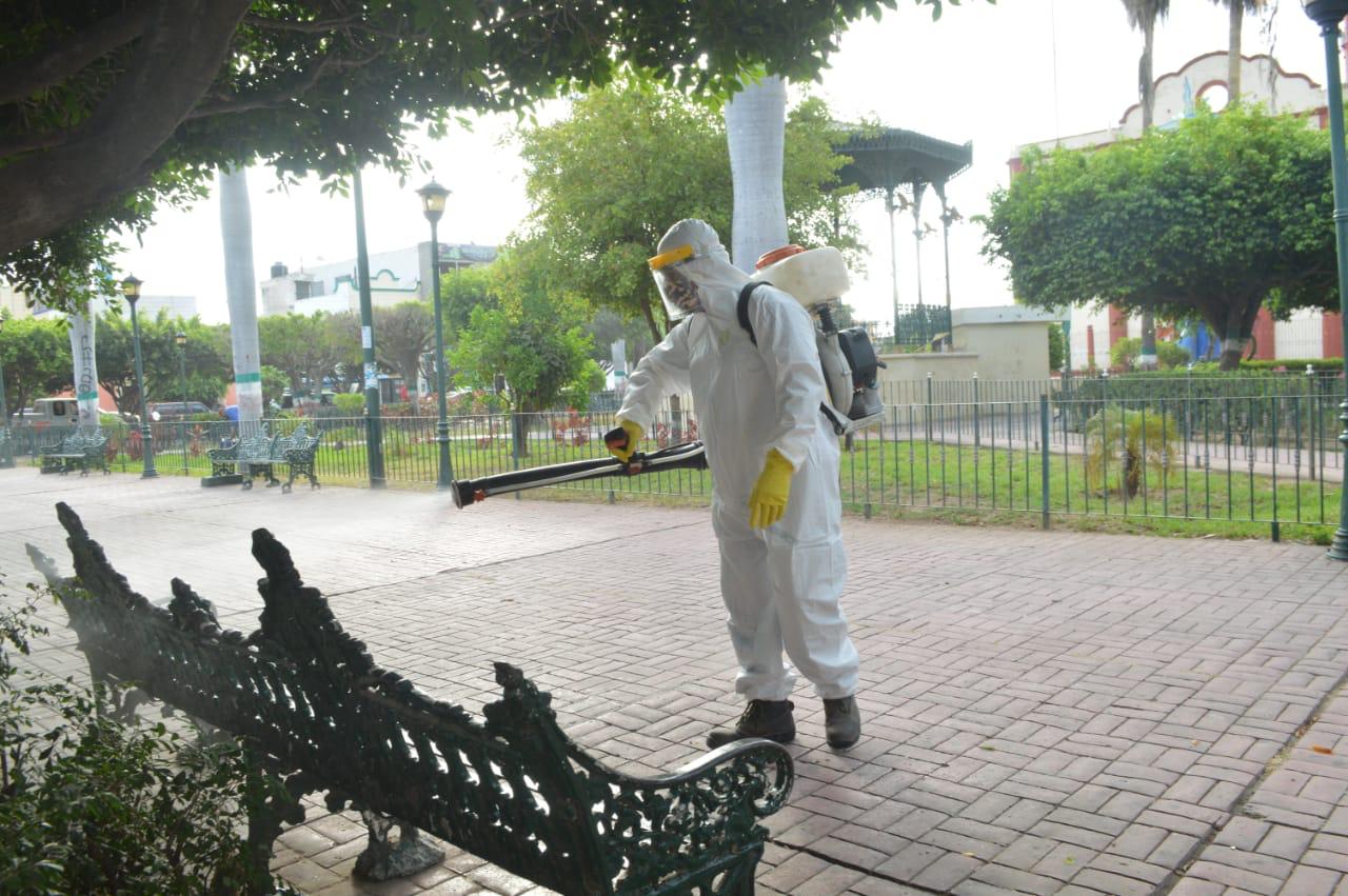 La plazuela, el mercado municipal, y los comercios del primero cuadro de Villa Unión fueron sanitizados por los “Cazavirus”, en tanto que el personal de Evaluación y Enlace Rural, apoyados por brigadistas del Instituto Mexicano del Seguro Social, entregaron poco más de 600 kit informativos de las acciones preventivas del coronavirus, así como cerca de 2,500 cubre bocas.