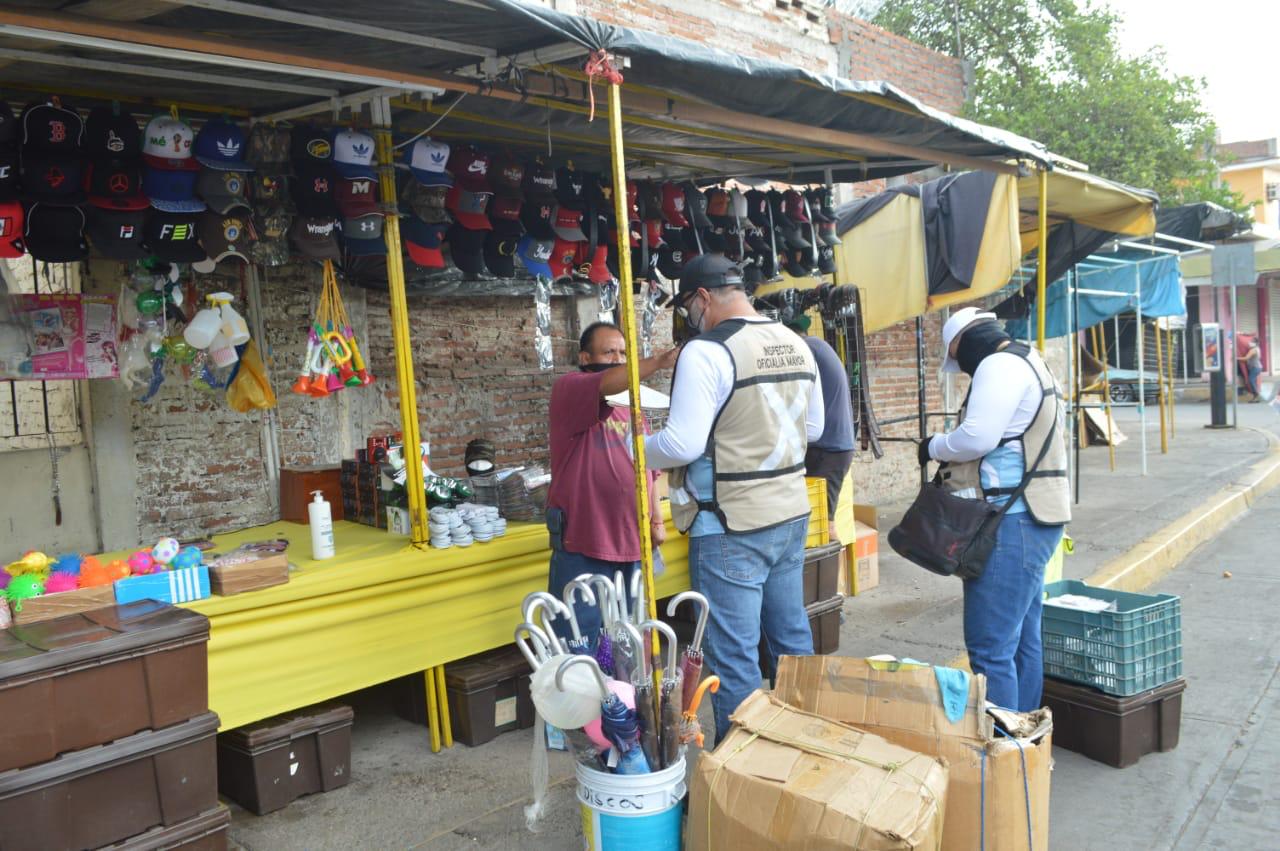 Mientras tanto, personal de la Subdirección de Comercio, de Oficialía Mayor, revisaron los comercios ambulantes fijos y semifijos con el fin de proceder en el ordenamiento de espacios, garantizar que haya banquetas libres para el paso de peatones, y sobre todo que los comerciantes den seguimiento y cumplimiento a los protocolos del COVID-19.