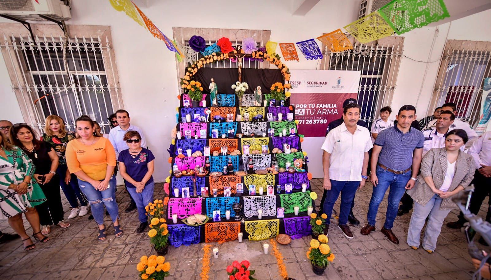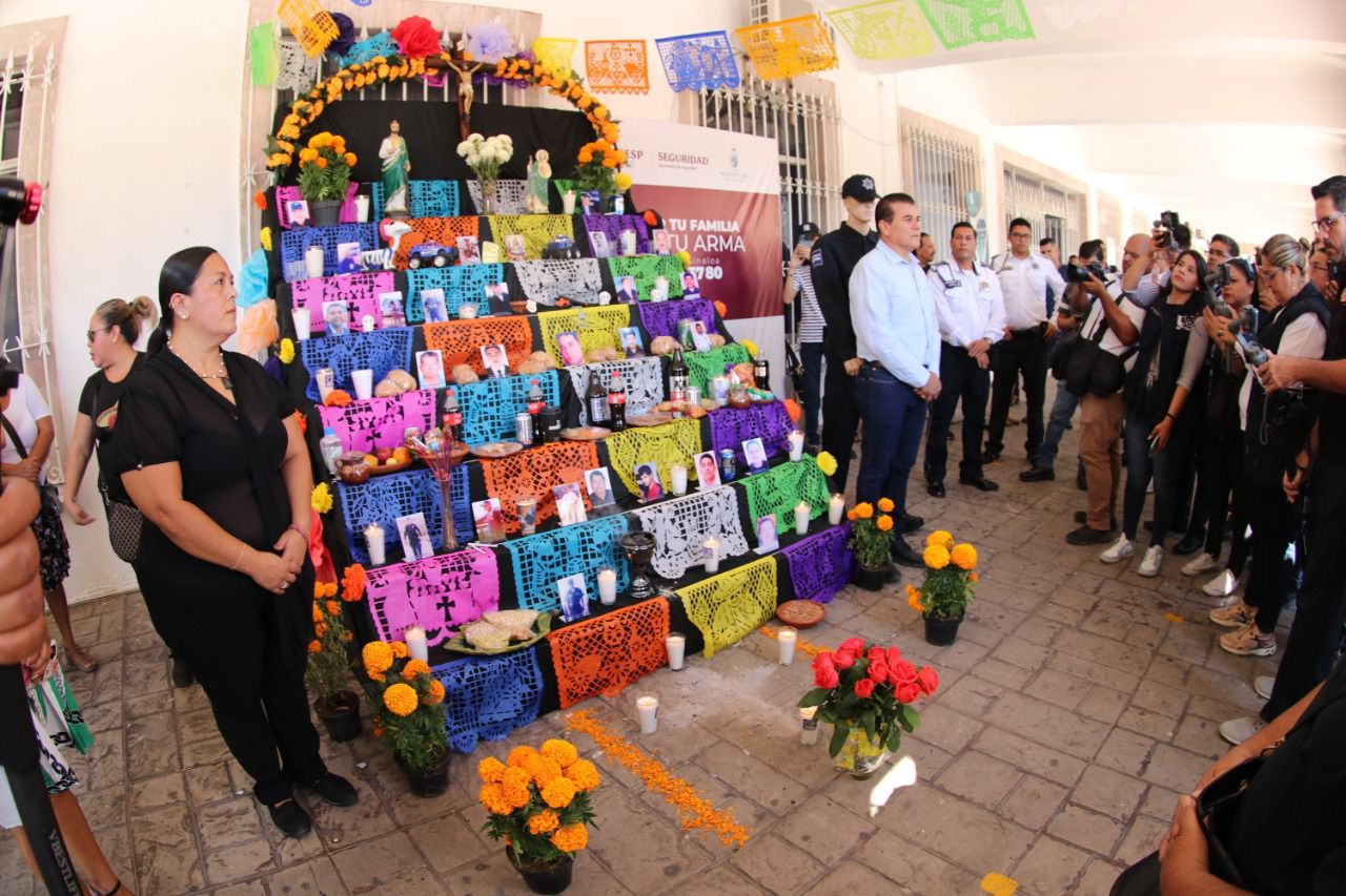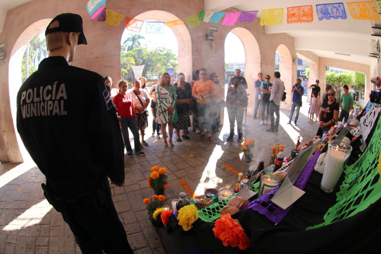 Mazatlán, Sinaloa, 2 de noviembre de 2022.- Agentes de Seguridad Pública Municipal caídos en el cumplimiento de su deber, servidores públicos y familiares fallecidos durante la pandemia de COVID-19, fueron recordados hoy con altares y ofrendas colocadas en el Palacio Municipal.