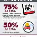 Culiacán, Sinaloa, 16 de noviembre del 2022.- Gobierno del Estado invita a aprovechar los descuentos en trámites vehiculares por el buen fin, el cual se llevará a cabo del 18 al 21 de noviembre, en donde se ofertarán descuentos del 50 por ciento al sacar tu licencia de conducir, y el 75 por ciento en multas y recargos.