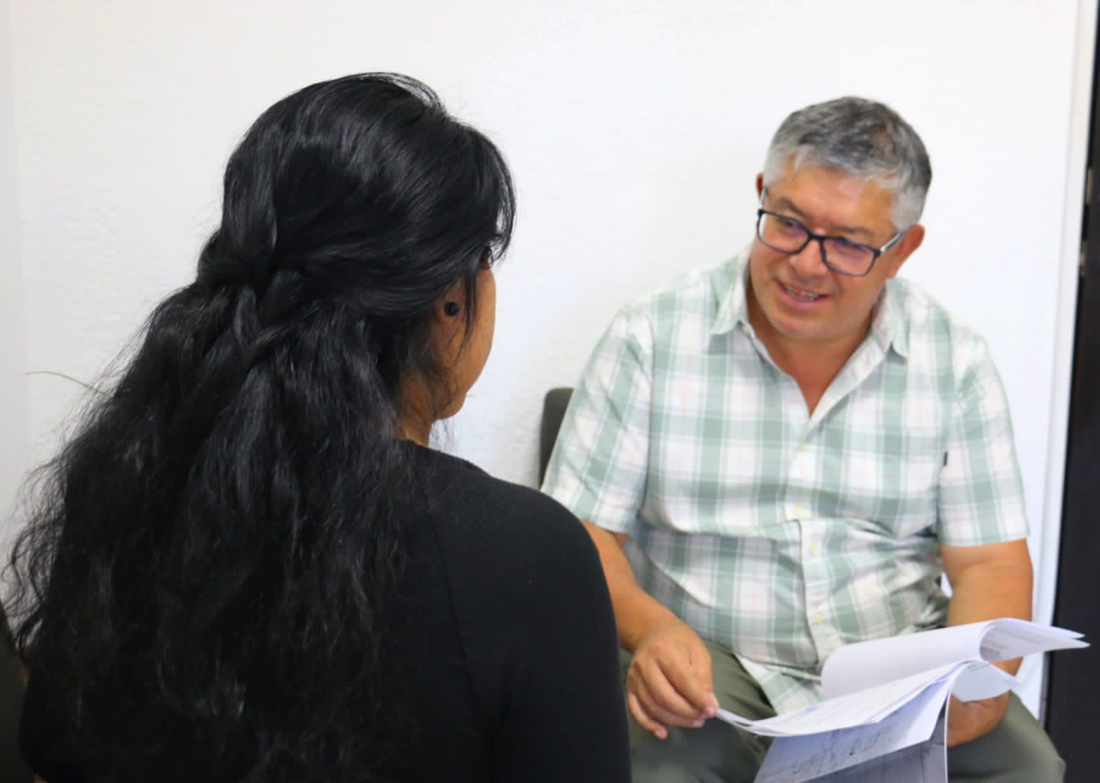 El director de bienestar y desarrollo social, Tonatiu Guerra Martínez y la directora de tenencia de la tierra y vivienda, Marlene Gutiérrez se reunieron con los vecinos de este asentamiento.