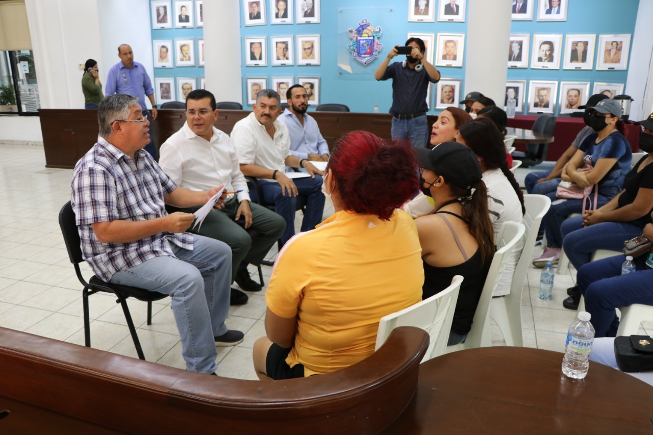 En Sala de Cabildo, el Secretario del Ayuntamiento, Edgar González Zatarain, el Director de Bienestar y Desarrollo Social, Tonatiu Guerra Martínez, y el Director de Obras Públicas, Luis Núñez Gutiérrez, se reunieron con docentes y padres de familia que tienen hijos en el mencionado kínder, para escuchar sus necesidades.