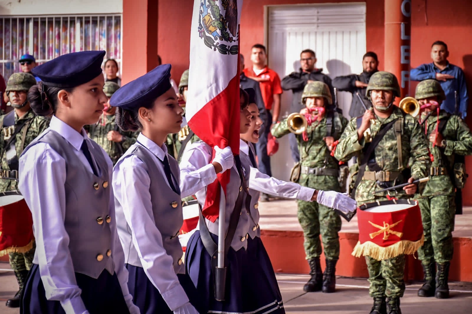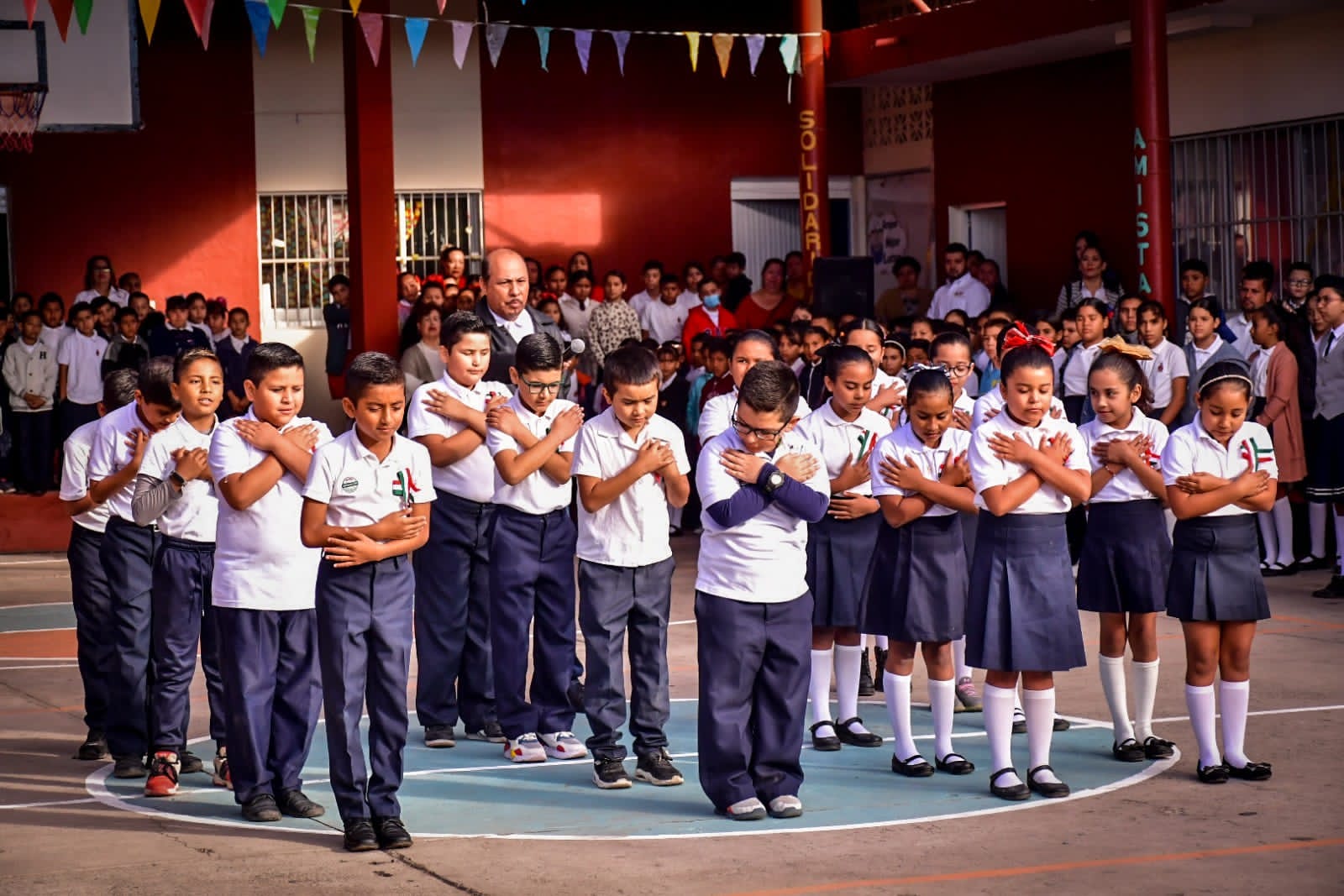 Las autoridades que acudieron al acto cívico fueron recibidas con un mensaje de bienvenida de parte de la alumna Sofía Rodríguez Rosales y el Director del turno matutino César Armando Aroche Tirado, quien a nombre del alumnado y el personal de la escuela, solicitó el apoyo de una techumbre que ayude a evitar que los alumnos sufran las inclemencias de las temperaturas y los rayos solares.