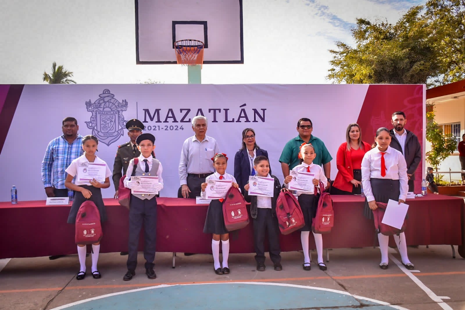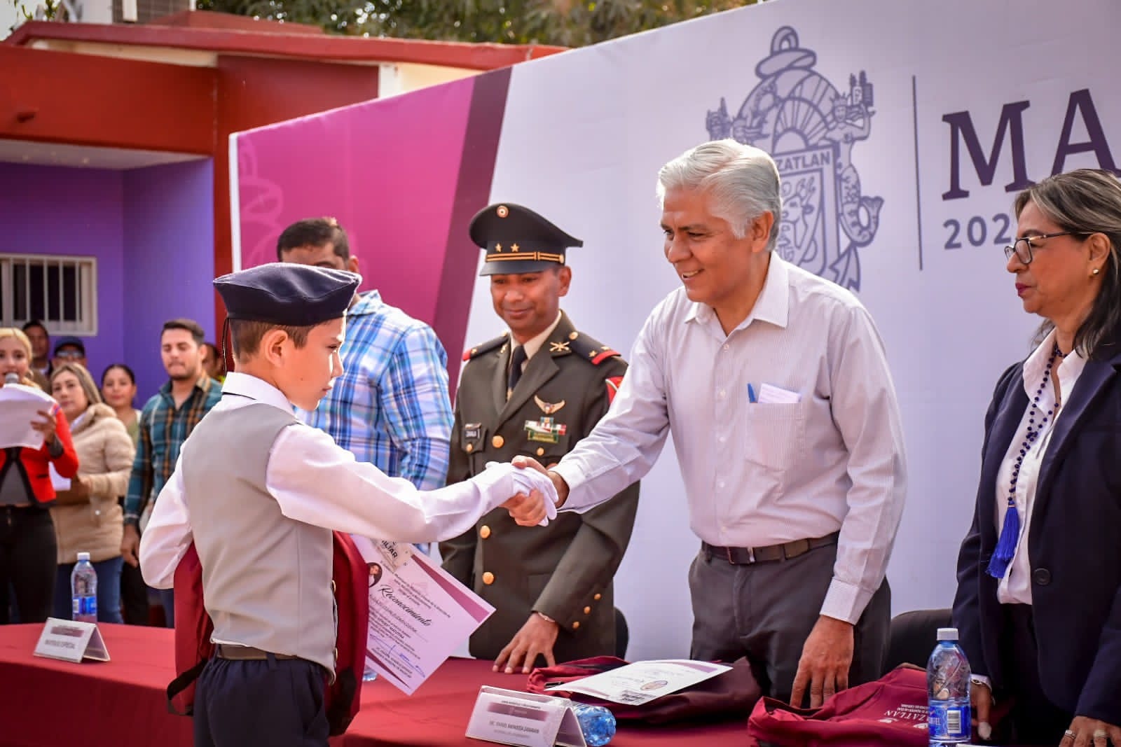 “Hay un compromiso que nos señalaba nuestro Presidente, que cuenten con la techumbre que están solicitando… eso es el granito, lo poquito que se puede poner como Mazatlán, pero que es transcendente para llevar a cabo el proceso de enseñanza aprendizaje de nuestros alumnos, en compañía de nuestros profesores”, mencionó.