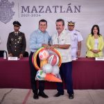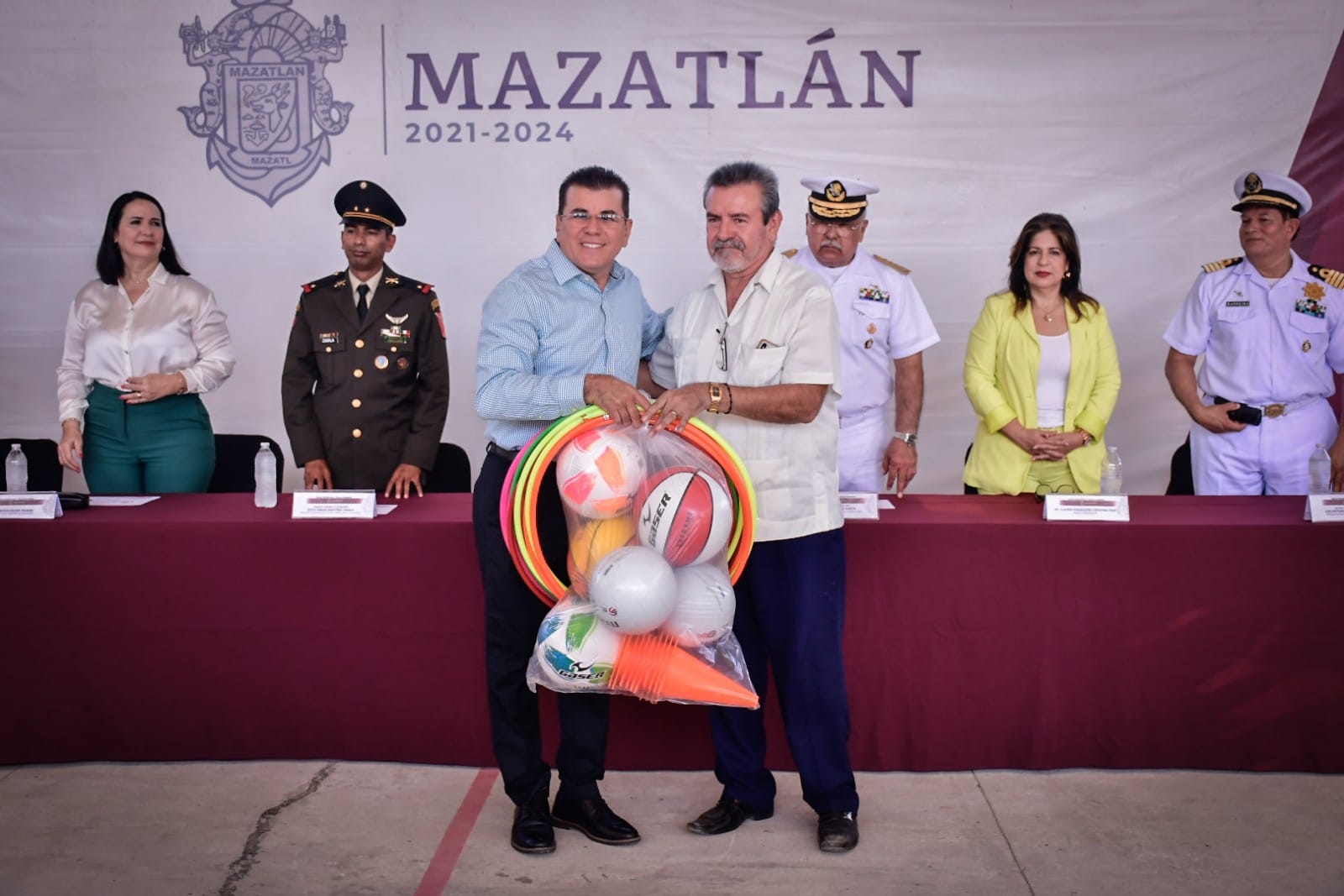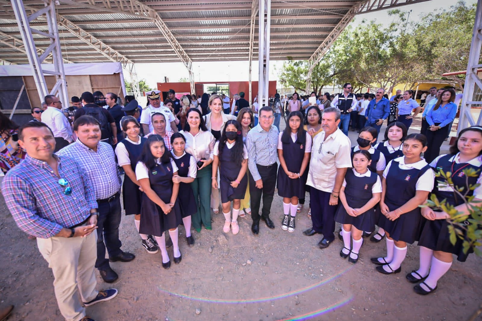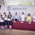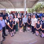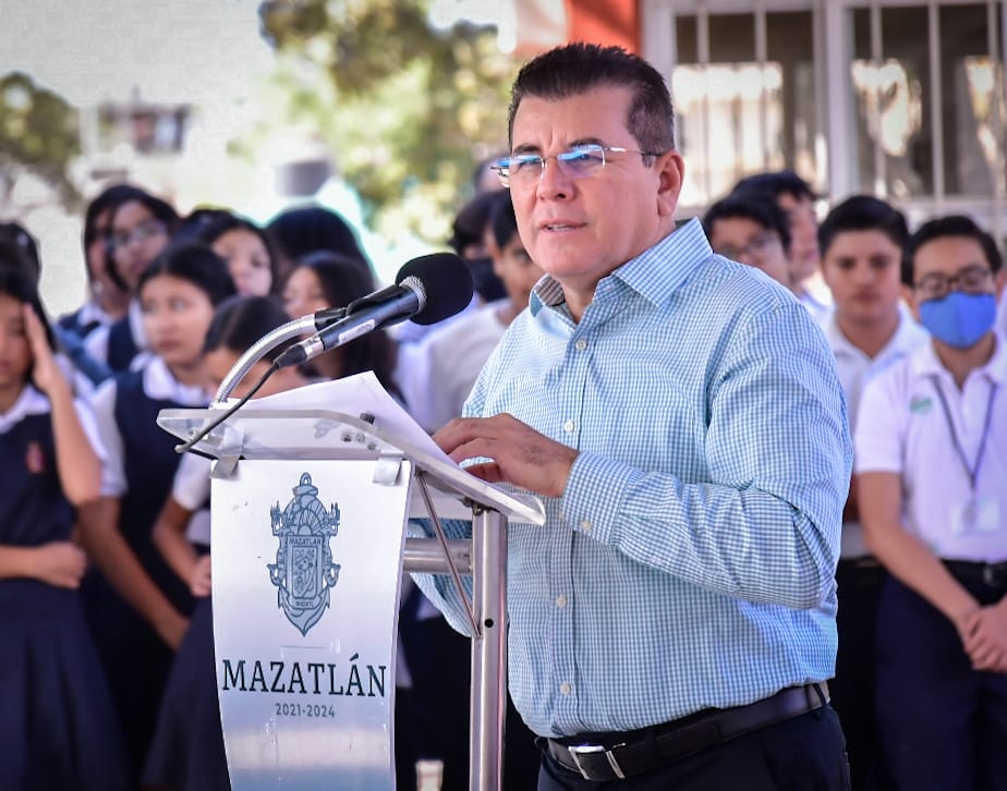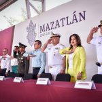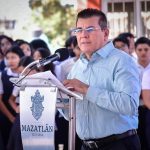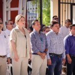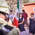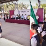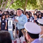 Decenas de alumnos y personal docente recibió a las autoridades municipales, militares y escolares, encabezadas por Edgar González, Alcalde de Mazatlán.