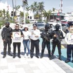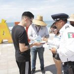 A la entrega de volates y proximidad social asistió la Directora del Centro de Atención y Protección al Turista, Astrid Macías Fregoso; el Director Operativo de la Policía Municipal, Pablo Ramírez Suárez y el Coordinador del Departamento de Educación Vial, Hedilberto Hernández Cabada.