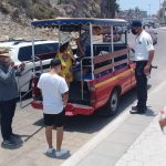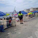 Agentes de Seguridad Pública continúan con el recorrido y presencia en los sitios de playa, en donde además de vigilar el cumplimiento a la sana distancia, se toman medidas como el cierre momentáneo de algunas zonas que se saturan de bañistas o paseantes; los elementos de Tránsito Municipal también apoyan en los cruces peatonales.