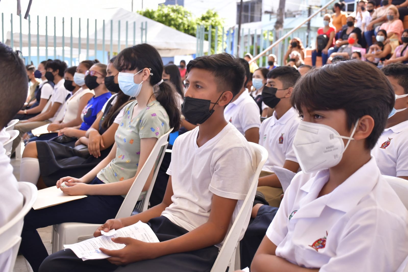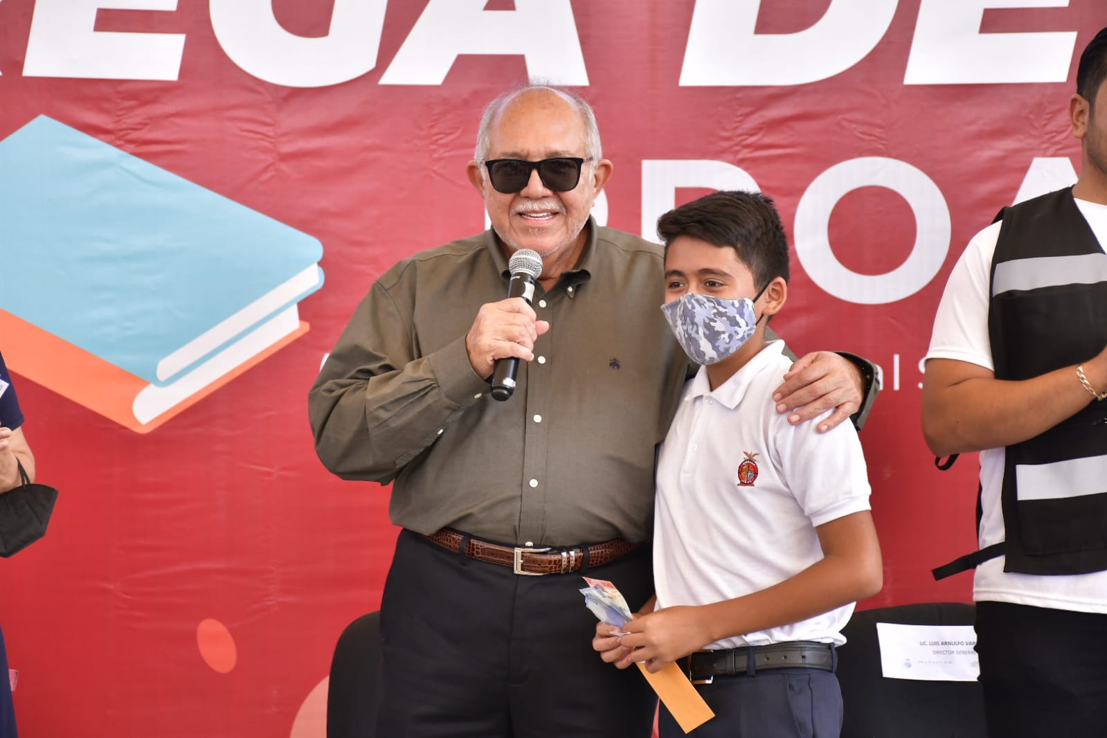 Mazatlán, SIN.- Con aplausos recibieron los jóvenes a el Alcalde Luis Guillermo Benitez Torres, quien realizó este martes la entrega de becas del Programa de Apoyo y Seguimiento a Estudiantes (Proase) a 1,500 estudiantes de nivel secundaria de Mazatlán, a través del Instituto Municipal de la Juventud en el Parque Martiano Carvajal.