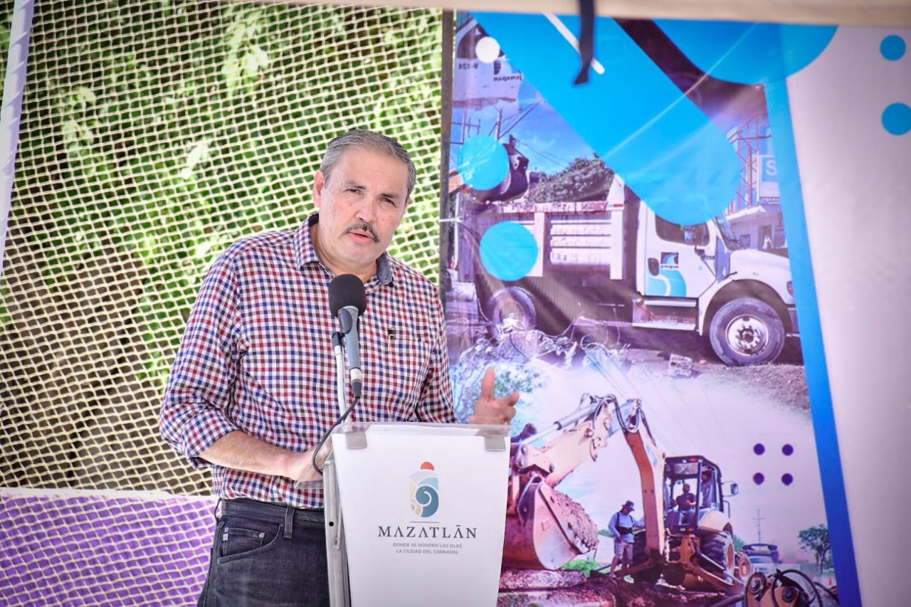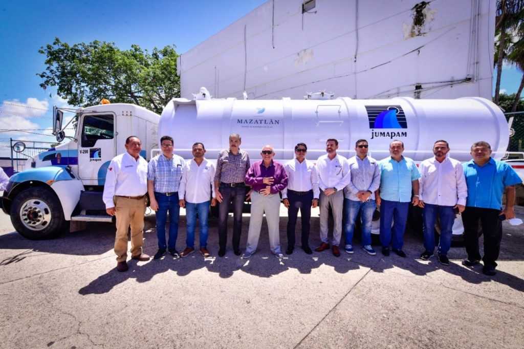 MAZATLÁN, SIN.- Este viernes, el Alcalde de Mazatlán, Luis Guillermo Benitez Torres, entregó a la Junta Municipal de Agua Potable y Alcantarillado de Mazatlán una flotilla de 13 vehículos y un lote de equipo especializado, del que destaca una estación topográfica.