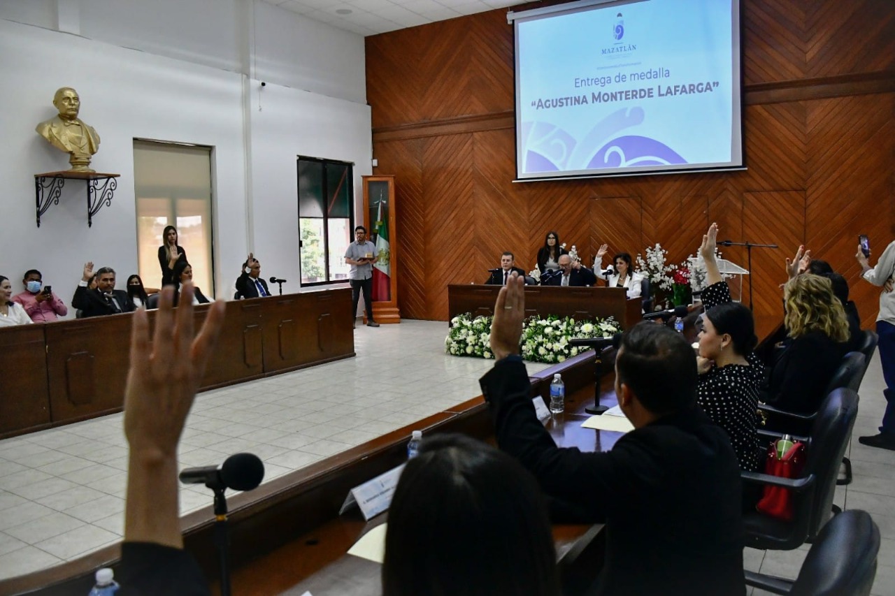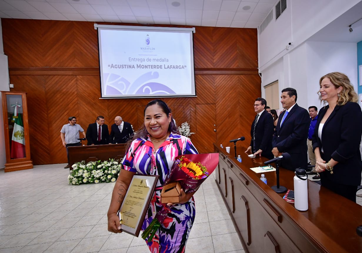 Mazatlán, SIN.- El pleno del cabildo del Gobierno Municipal entregó el Premio al Mérito Femenino 2022 “Agustina Monterde Lafarga” a la ciudadana Irma Arellanes Hernández, por su incansable esfuerzo y valentía para ayudar a otras personas a encontrar a familiares desaparecidos, a través de la organización Tesoros Perdidos Hasta Encontrarlos, misma que fundó en el 2017.