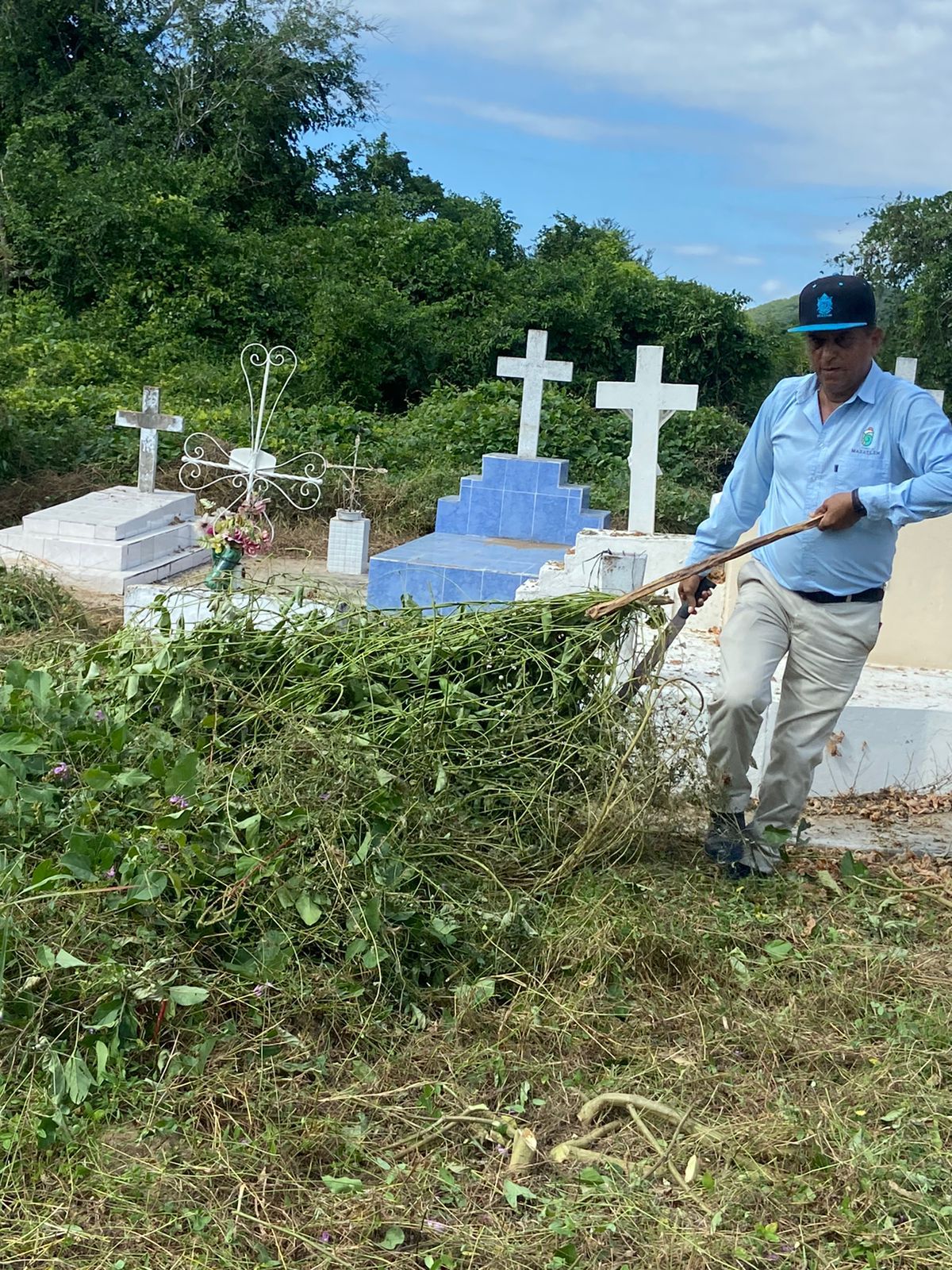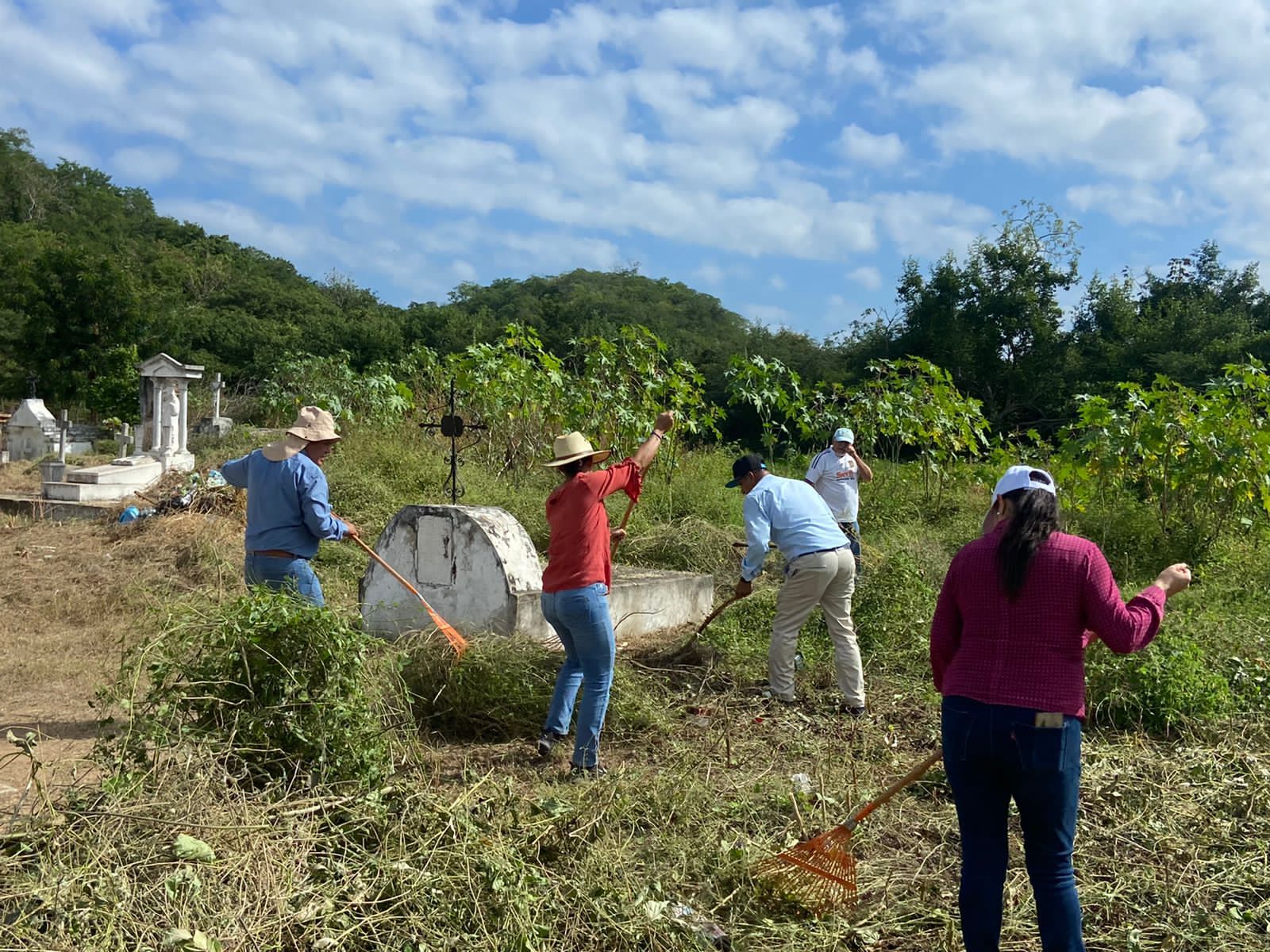 Mazatlán, Sinaloa.- Personal de la Dirección de Evaluación y Enlace, y el área de Servicios Públicos del Gobierno Municipal, llevaron a cabo una jornada de limpieza de panteones en las comunidades de La Mole, El Castillo, El Venadillo, Puertas de Canoas, Porras y El Roble, a fin de dejarlos listos para el Día de Muertos, informó Jesús Heredia Lizárraga, titular de la dependencia.