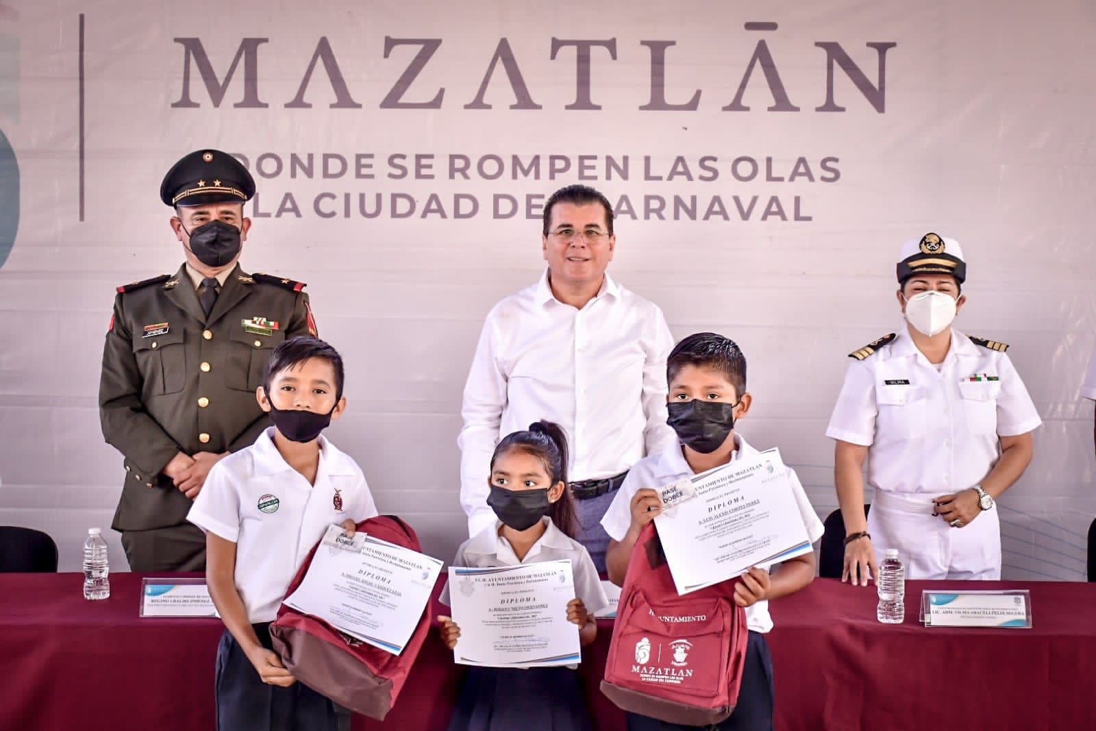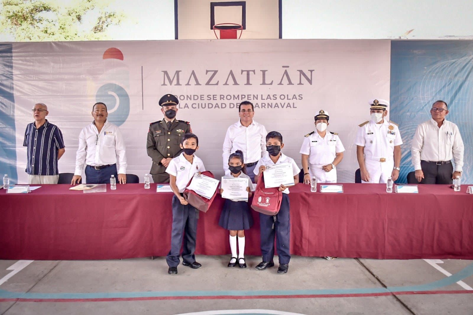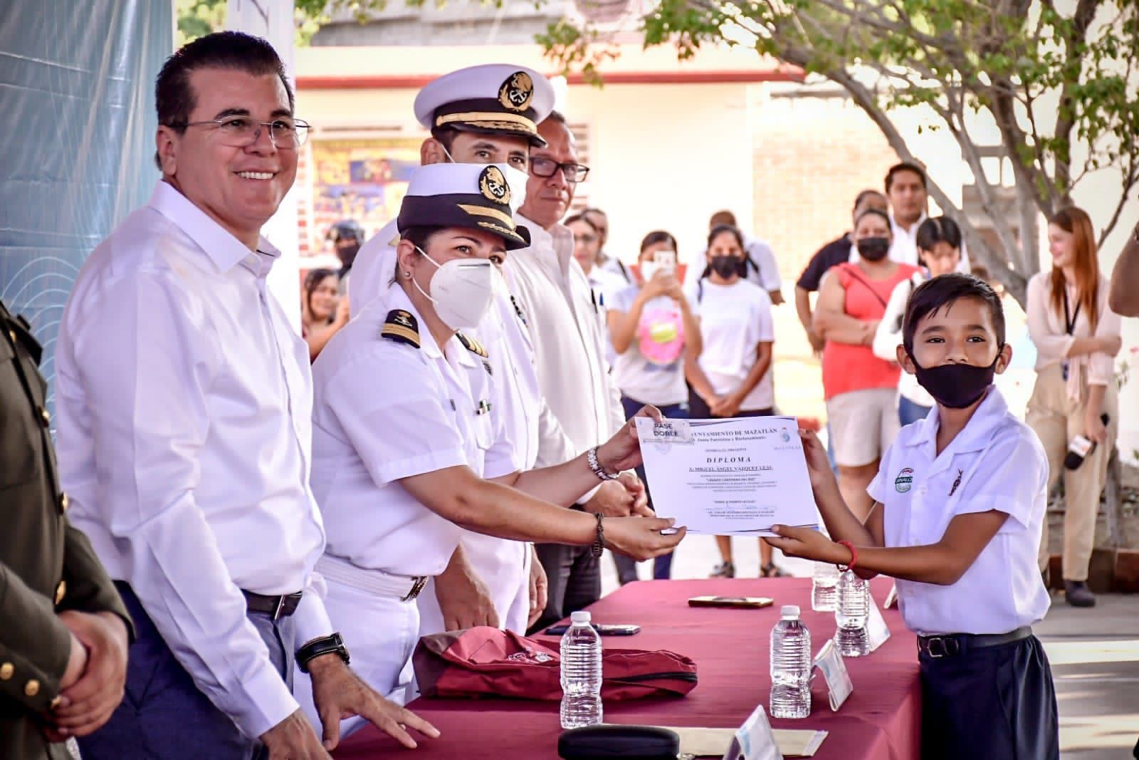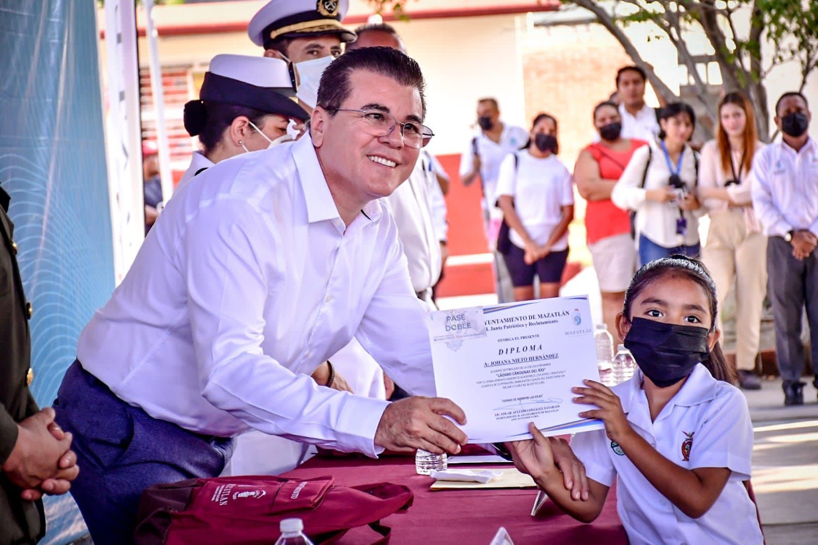 Mazatlán, SIN.- En la continuidad de reforzar el compromiso con el sector estudiantil, el Gobierno Municipal realizó en esta ocasión el tradicional “Lunes Cívico” en la Escuela Primaria “Lázaro Cárdenas del Río” que se localiza en la colonia La Sirena.