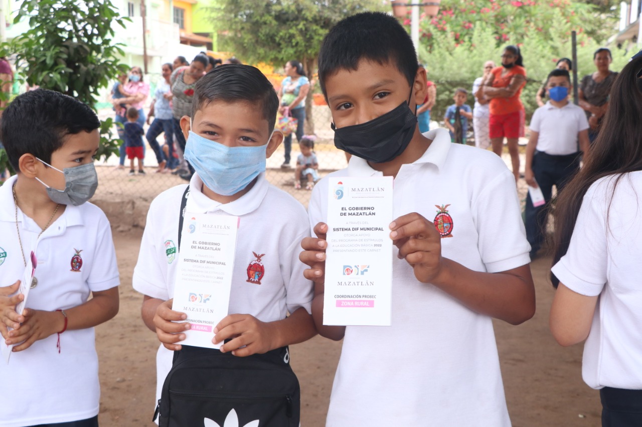 Mazatlán SIN. – Cumpliendo con el compromiso del Alcalde Luis Guillermo Benitez Torres, de velar por la educación de la niñez, Brenda Borboa, Directora de la paramunicipal, arrancó la entrega de apoyos económicos a niñas y niños que se encuentran dentro del padrón de becas PROBEC de zona rural; con una inversión de 946 mil 600 pesos para la educación mazatleca.