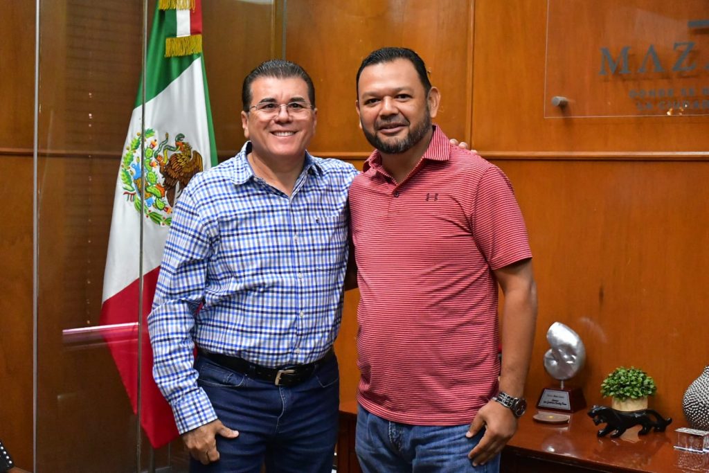 Mazatlán, Sinaloa, 21 de noviembre de 2022.- Ante los cambios que se aproximan en la Gerencia General de la Junta Municipal de Agua Potable y Alcantarillado de Mazatlán, el Alcalde Edgar González Zararain, y el Secretario General del Sindicato de JUMAPAM, Jesús Moreno Martínez, sostuvieron una reunión la mañana de este lunes para coordinar apoyo mutuo entre el Gobierno Municipal y los trabajadores de la junta.