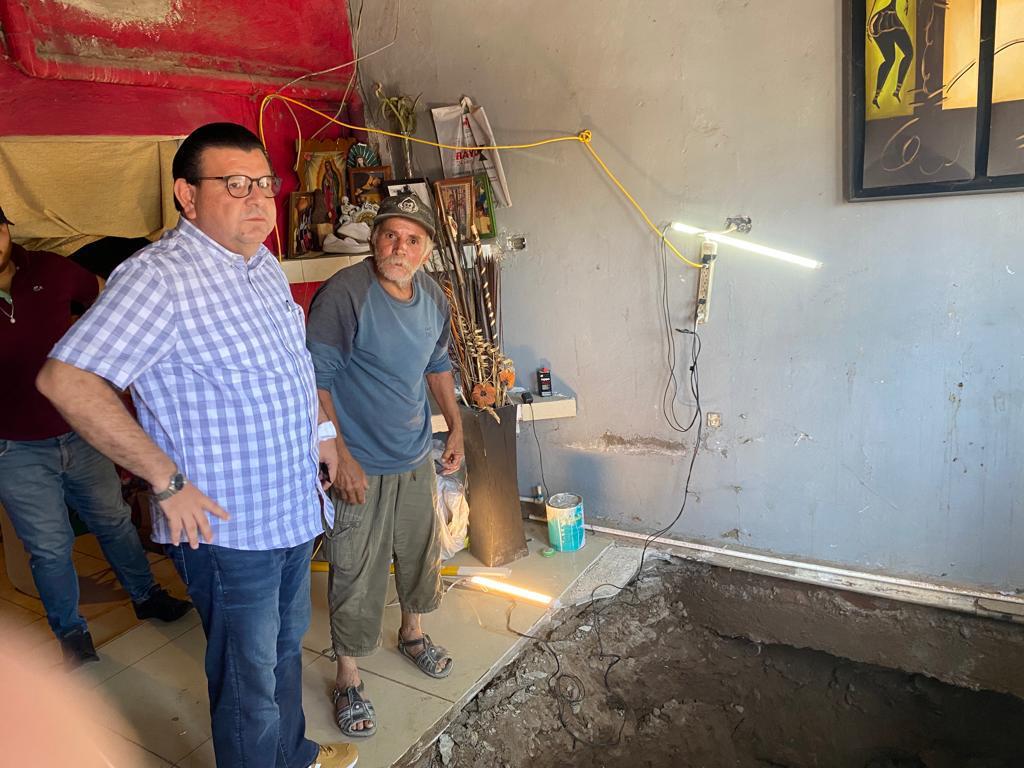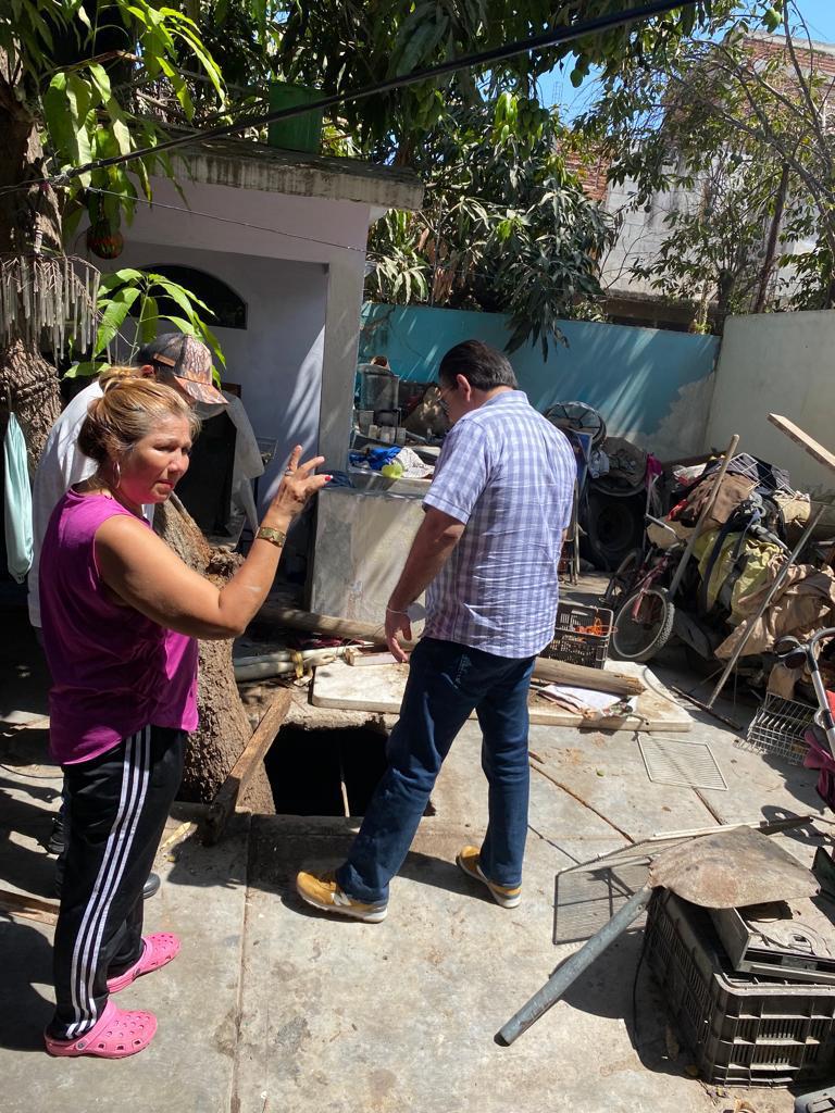 El secretario de Obras Públicas, José Luis Zavala, acudió al domicilio donde parte del piso colapsó, quedando al descubierto un túnel