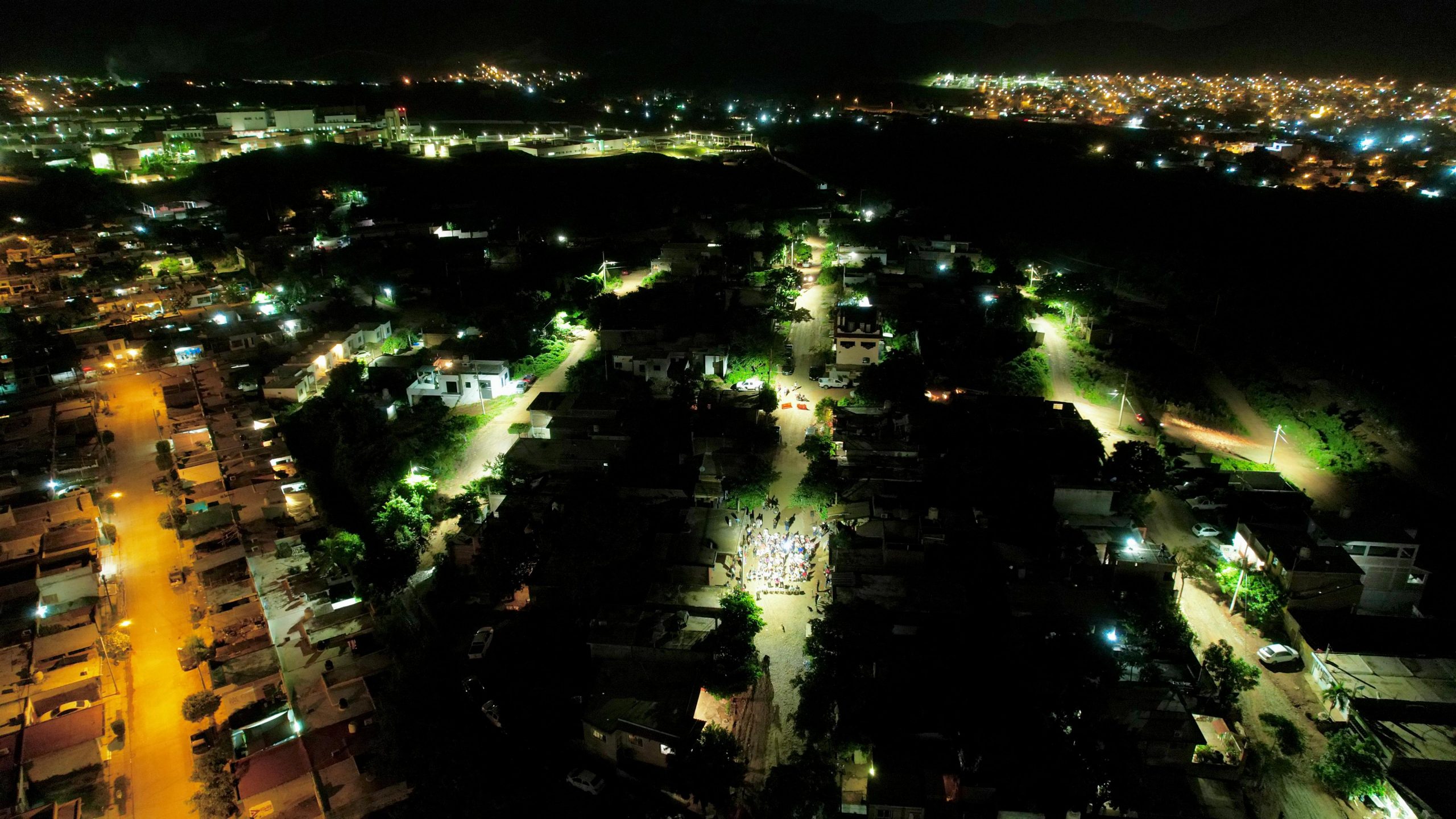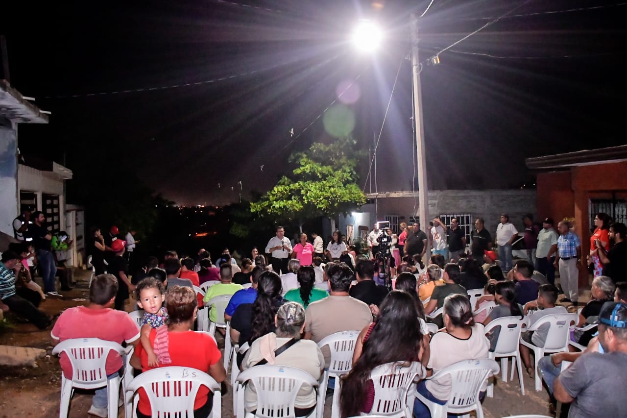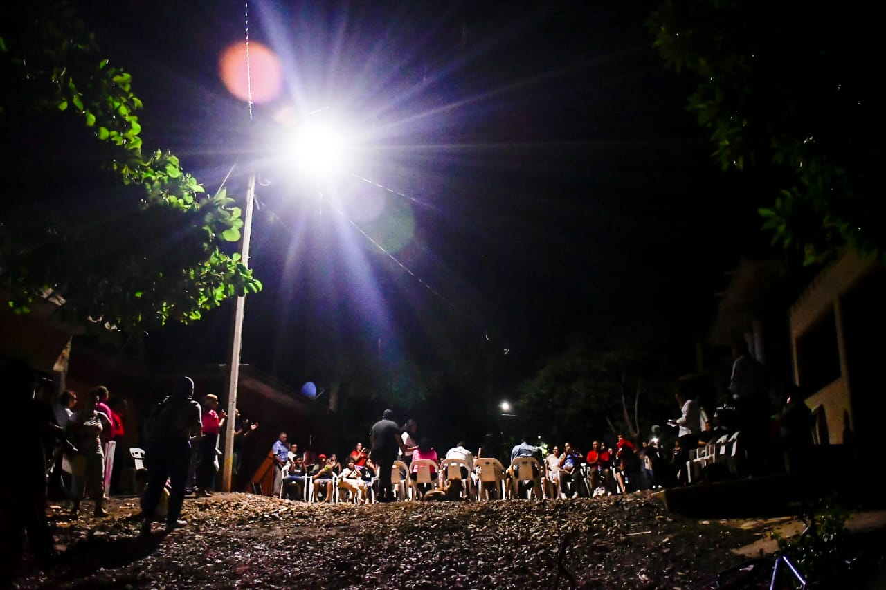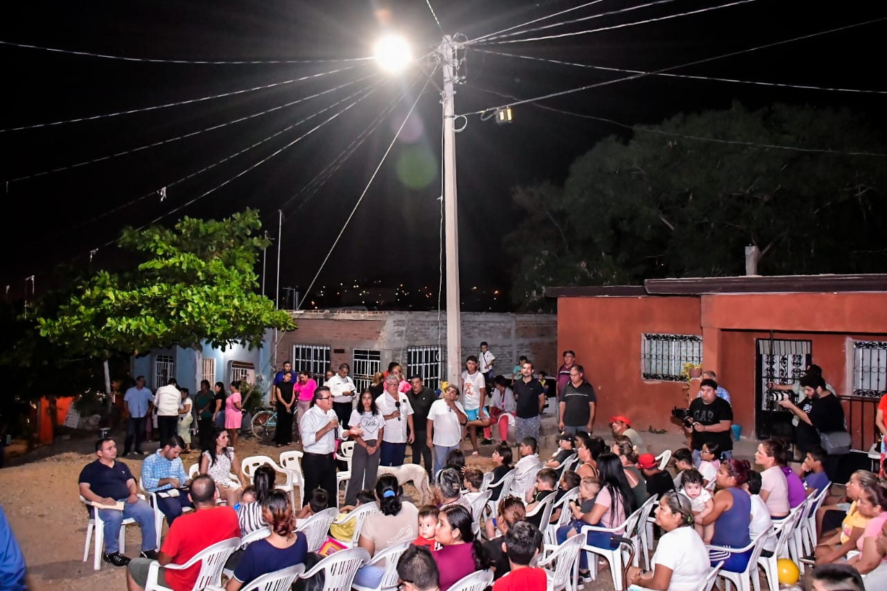 Edgar González, Alcalde de Mazatlán, acudió al asentamiento para encender las luminarias de intensa luz blanca, reemplazando a las antiguas de vapor de sodio y luz amarilla.