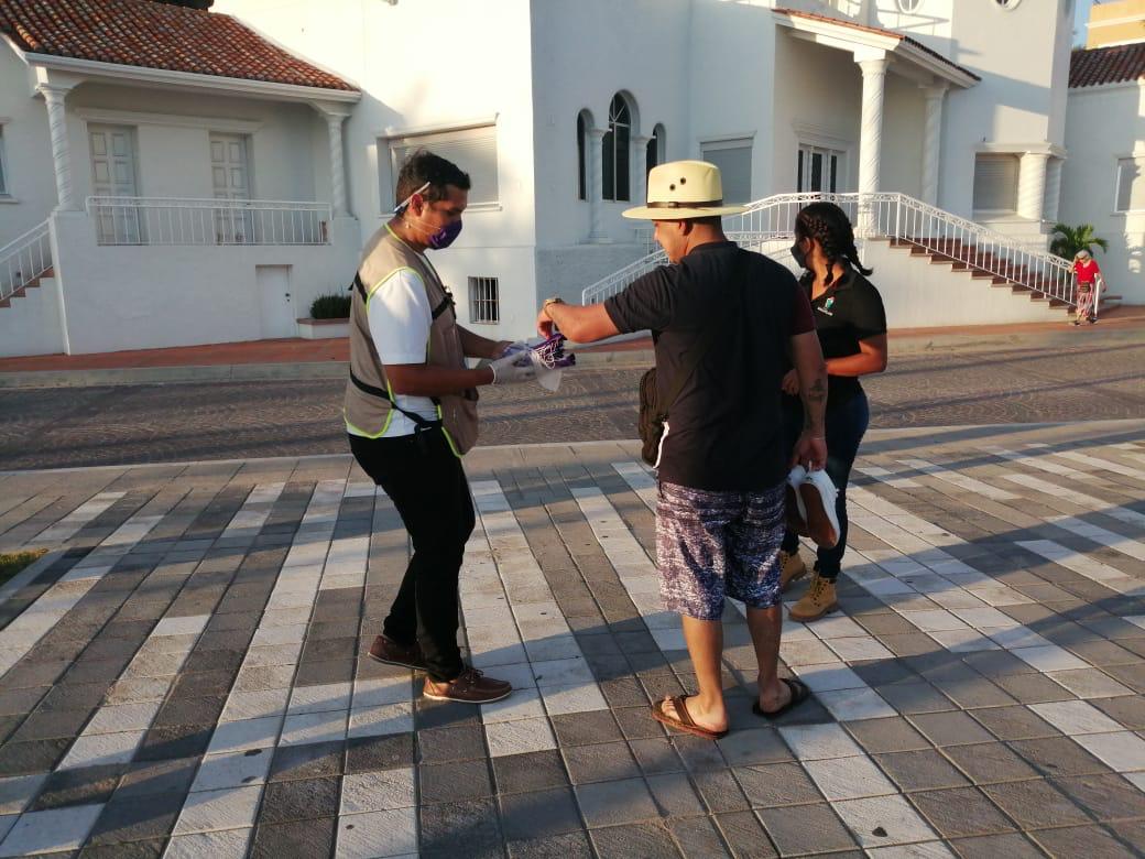 Torres Ruelas dijo que hasta el momento han repartido unos 20 mil cubrebocas en la franja turística, principalmente a turistas que no lo cargan.