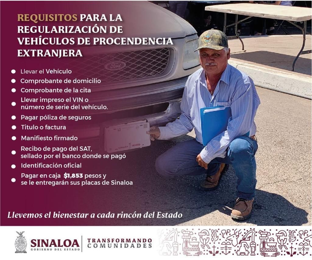 o Pagar en caja $1,853.00 y se le entregarán sus placas de Sinaloa.